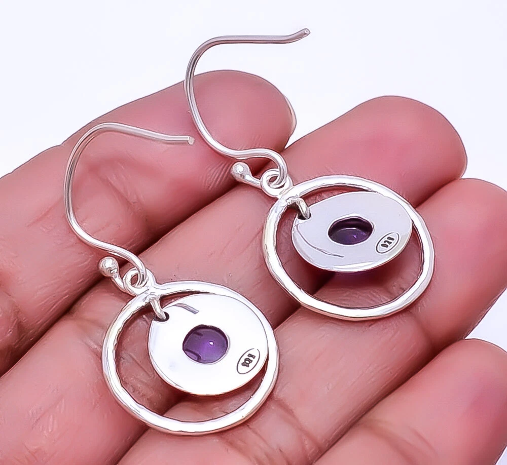 Theme Beauty Main Stone Depth As Seen in Picture Main Stone Length As Seen in Picture Main Stone Width As Seen in Picture Seller Warranty Yes Shape As Seen in Picture SKU E_9337_136_19 Main Stone Size 8X8 Mm Antique Yes Handmade Yes Type Earring Style Drop/Dangle Metal Sterling Silver Metal Purity 925 Parts Per 1000 Base Metal Sterling Silver Total Carat Weight 21 Main Stone Amethyst Main Stone Creation Natural Main Stone Shape Round Main Stone Color Purple Main Stone Treatment Natural Material Gemstone, Stone Number of Gemstones 2 Item Length 1.48 Features Engraved, Nickel-Free, Handcrafted Ear Area Lobe Brand Unbranded Country/Region of Manufacture India Country of Origin United States Color As Seen in Picture Diamond Clarity Grade Not Applicable Number of Diamonds As Seen in Picture Item Diameter As Seen in Picture Gemstone Clarity Grade Translucent Diamond Color Grade Not Applicable Customized No Colored Diamond Intensity Not Applicable Certification 100% Genuine Guaranteed Setting Style Bezel Occasion Christmas, Birthday, Anniversary, Engagement, Wedding, Valen Shipping & Handling - Charge - 1st item-5.90 And Additional item-1.90 Handling Time - 1 Days . Delivery Time - 2 TO 3 DAYS. Shipping Service - USPS First Class Package 2 -3 Days. Returns - 1.We offer a 100% Money Back Guarantee minus shipping for 30 days after receiving the Item / item's. 2..The item must not be altered or damaged in any way shape or form. 3.Upon receiving these items your payment will be refunded. 4.Email us for return instructions before sending merchandise back. 5.Please allow up to 1 business day for all returns to receive credit. 6.Sizing does not affect the return policy. Payment - We accept PayPal for Payment ,should made with in 14 days once buying or winning done , in case of late information expected .