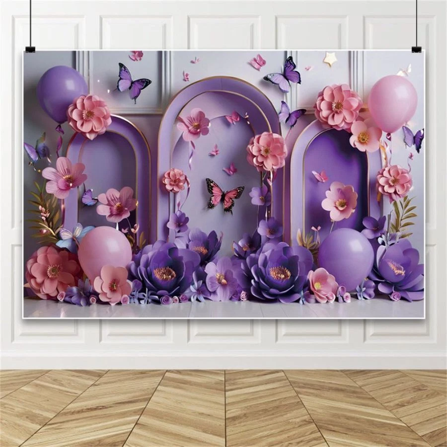 Purple Butterfly Baby Shower Wedding Birthday Backdrop Photo Background Banner