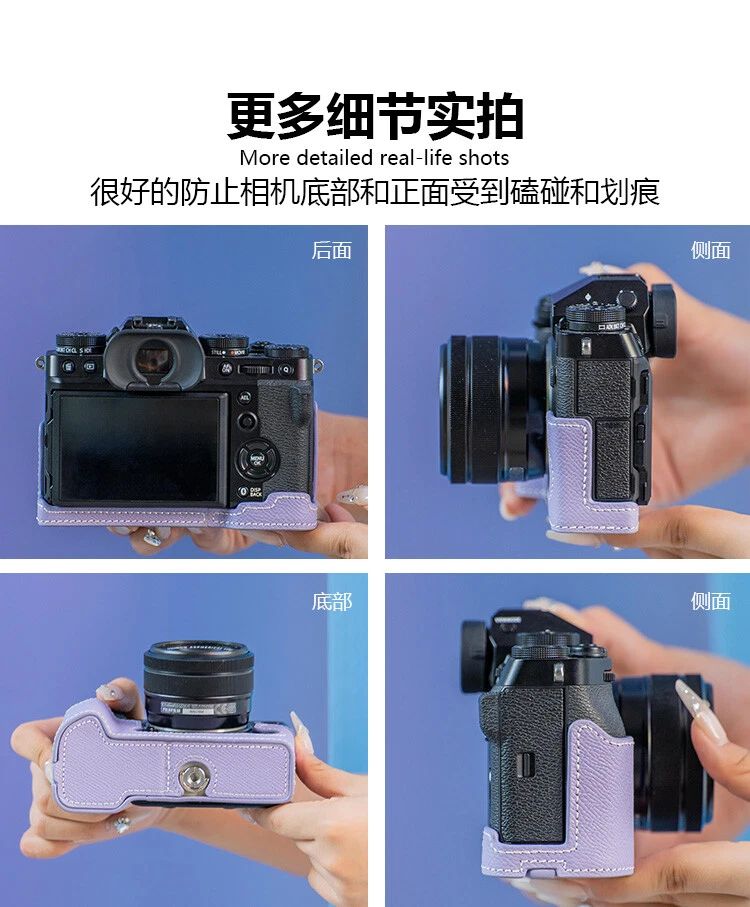 Introduction: 1. This genuine leather half case bag, specially designed for retro style lovers and Fujifilm XT5 camera users. 2. Handmade with exquisite craftsmanship, this half case bag is a perfect fit for your Fujifilm XT5 camera, provides excellent protection and adds a touch of elegance to your camera. 3. The high-quality leather material gives a comfortable grip and prevents accidental slips. 4. The retro design and classic leather texture create a vintage feel, making your camera stand out from the crowd. 5. This leather half case protects the camera's safety and enhances the feel without affecting its use: * Under base screw is made by copper and it can easy take off by coin. You don't need to take off the half case when you use tripod. * There is battery door opening hole and 1/4 screw hole for mounting on tripod. * There is also a semicircle opening for the flip screen, which is more convenient to open the screen. * Does not affect the use of side interfaces Package inculded: 1 * Half case for Fujifilm XT5 camera Tips: Please allow 0.1- 0.5cm error due to manual measurement. Please make sure you do not mind before you buy. The colors may have different as the difference display, please understand. Please check which Length and the quantity you need. Note: We will reply your message or e-mail within 48 hours . Customers satisfaction is very important to us! Please email or ebay message us before leaving any Negative and Neutral feedback or open any dispute on paypal. Please give us the opportunity to resolve any problem.We understand the concernsand frustrations you might have,and will try our best to resolve the issues. Shipping: Item will be shipped out within 48 hours upon receipt of your full payment. Please make sure your address in paypal is correct. If you want to change the address, please give us ebay message right away you make the payment. Items are shipped from China or HongKong using Airmail, reach most of the countries within 10 to 20 business days. Delivery time depends on destination and other factors, it may takes up to 25 business days.Other countries or remote area may take longer. Please E-mail or eBay message us if the items did not deliveried within 31 days.And we can give you a satisfactory solution. However, it may delay due to industrial strike action, severe weather, custom reasons or peak seasons, such as Christmas/New Year Holidays. Returns: If this item is defective upon receipt, customer has up to 30 days from date of receipt for exchange of a new one. But buyers should be pay for the shipping charge for returning. We care about our valued customers, and are always willing to work things out. If you have any problems, please e-mail us immediately. Please give us the opportunity to resolve any problem. Thanks!