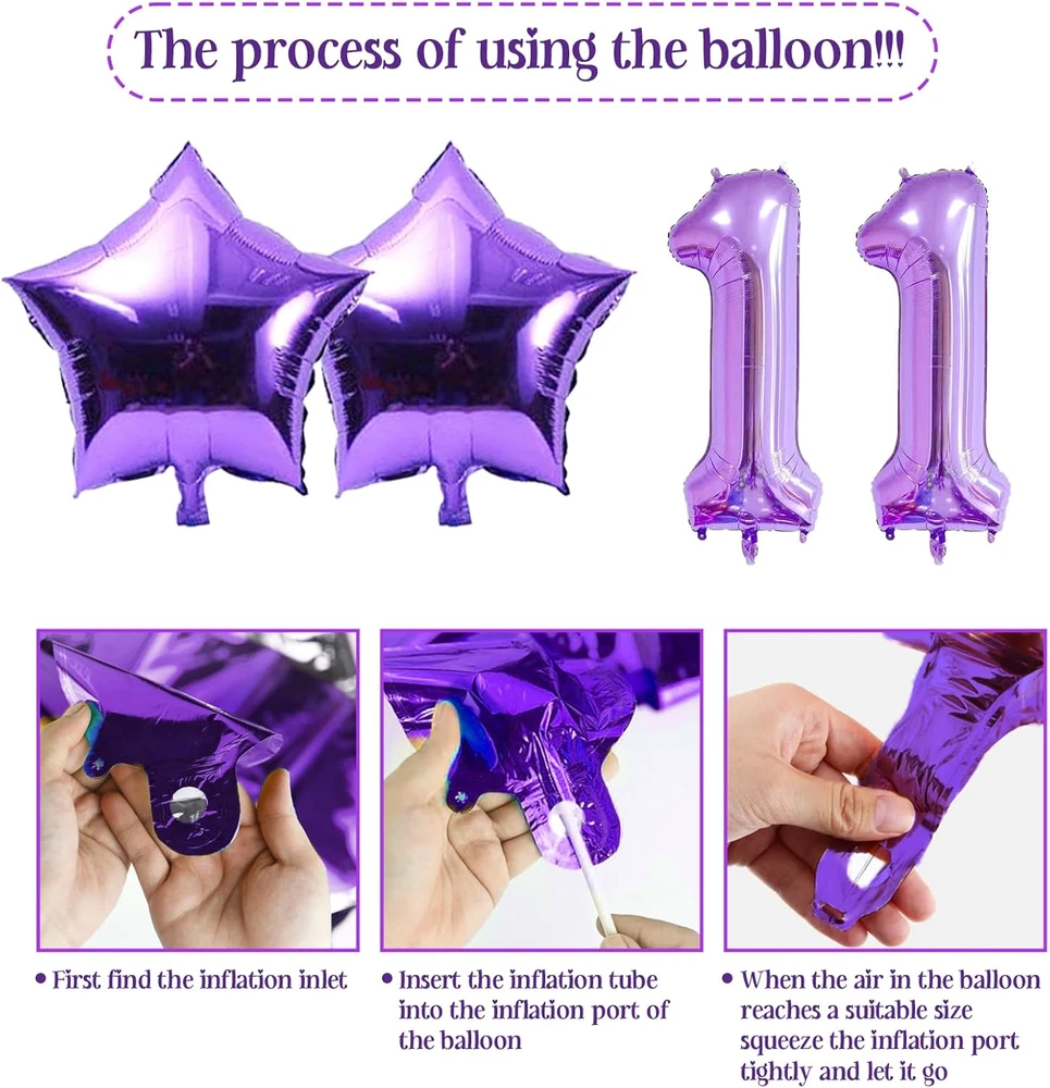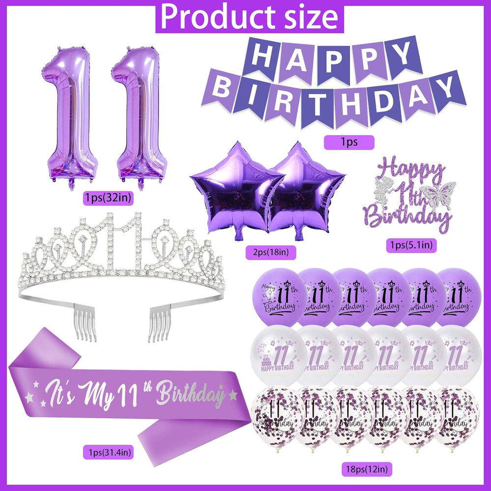 Store New Arrivals Add to Favorite View Feedback Contact Fast deliveries to the customer's home Quality customer service John Make the customers happy! Purple + Lavender 11Th Birthday Decorations for Girls, Includes Happy Birthday Banner, Balloons, Silver Crown, Lavender Glitter 11 Year Old Cake Topper and It'S My 11Th Birthday Sash Description 11 year old birthday decorations: The box includes: 1 pcs x silver 11th birthday rhinestone crown; 1 pcs x purple “HAPPY BIRTHDAY”banner; 1 pcs x "Happy 11th Birthday" cake topper; 1 pcs x lavender "It’s my 10th Birthday" sash; 1 pcs x 32inch purple number "11" foil balloon; 2 pcs x 18inch star foil balloons; 18 pcs x 12inch 11th happy birthday latex balloons, which can meet your 11 year old girl birthday decorations all needs 11th Birthday Gifts for Girls: This is the most important day of your daughter's year, make your girl special and dazzling on this special day with the rhinestone crown and lavender birthday sash; purple pretty banner and lots of balloons creating romantic atmosphere and perfect props for taking pictures 11th Birthday Photo Booth Backdrop: The sweet 11th birthday party decorations use purple as the theme color, Use them to decorate your daughter’s party as a photo booth backdrop! Creating a wonderful time for your daughter! All this party supplies create a warm and happy atmosphere for you and narrow the distance between you and your family and friends High Quality: Our 11 year old birthday party sets crafted with high-quality materials, the balloons and decorations are designed to last throughout your celebration After-Sales Service: Warm Reminder: Do not fill the balloon with too much gas, 80% -90% is enough. You can feel free to contact us if you have any question with our purple 11th birthday party decorations pack 11th Birthday Decorations for Girls - Purple Glitter It’s My 11th Birthday Cake Topper and Sash, Silver 11th Birthday Crown, Lavender Happy Birthday Banner Number 11th Birthday Foil Balloons What will you get ? 1 x Purple 'Happy Birthday' Banner (6*80 inch) 1 x Purple Number “11”Aluminum Foil Balloon (32 inch) 1 x Silver 11th Birthday Rhinestone Crown(5.5*5.1*1.57inch) 1 x Lavender Birthday Sash with Silver Foil Letter "It’s My 11th Birthday"(3.74*31.4 inch) 1 x Purple Glitter "Happy 11th Birthday" Cake Topper (4.2*5.2 inch) 2x Purple Star Aluminum Foil Balloons (18 inch) 6x White "Happy 11th Birthday" Latex Balloons (12 inch) 6x Lavender "Happy 11th Birthday" Latex Balloons (12 inch) 6x Lavender "Happy 11th Birthday" Latex Confetti Balloons (12 inch) Perfect Choice for Your Daughter Birthday Gift Make your daughter special and dazzling on this special day with the silver rhinestone crown and lavender birthday sash; Purple and white pretty banner and lots of balloons creating romantic atmosphere. All this party supplies create a warm and happy atmosphere and perfect props for taking photos with all the family and guests! Perfect for decorating 11th birthday party, 11th birthday decorations, 11th birthday party supplies, cheers to 11 years party, 11 and fabulous birthday decorations for girls, it's my 11th birthday party, i am eleven birthday party, photo backdrop and so on. After-Sales Service Warm Reminder: Do not fill the balloon with too much gas, 80% -90% is enough. All accessories will be carefully checked before packaging. If you have any doubts about the products, please fell free to contact us. We will certainly provide you a satisfactory solution. Item model number ZY-082P11thBDS Unit Count 25.0 Ounce Color Purple + Lavender Pattern Heart Product Dimensions 1.85 x 5.85 x 5.85 inches Material Latex, Rhinestone, Satin Theme Princess Item Weight 7.2 ounces Shape Round Manufacturer recommended age 5 - 15 years Occasion 11th Birthday Cartoon Character Girls Included Components function(f) {var _np=(window.P._namespace("DetailPageProductOverviewTemplatesJava"));if(_np.guardFatal){_np.guardFatal(f)(_np);}else{f(_np);}}(function(P) { P.when('A').execute(function(A){ A.on('a:truncate:po-attribute-truncate-2:updated', function(data) { var isTruncated = !data.truncateInstance.getIfTextFits(); var seeMoreElement = document.getElementById('po-attribute-see-more-id-2'); if(seeMoreElement) { seeMoreElement.style.display = isTruncated ? '' : 'none'; } }) }); })); 1 pcs x 11 year old cake topper, 1 pcs x lavender "It’s my 11th Birthday" sash, 1 pcs x purple number “11”aluminum foil balloon; 2 pcs x star foil balloons; 18 pcs x 10th happy birthday latex balloons, 1 pcs x purple “HAPPY BIRTHDAY”banner, 1 pcs x silver 11th birthday rhinestone crown See more ABOUT US We offer the best prices around on high quality products. Our E-store includes media such as books, movies, music and games while offering electronics, toys, sporting apparel, clothing, tools, general home, garden items and more. SHIPPING We are always working hard to ensure your package arrives as soon as possible. Please understand that some factors like weather, high postal traffic, and the performance of shipping companies are outside of our control. We offer free shipping to the lower 48 states and ship within 2 business days of payment, usually sooner. We do not accept P.O. Boxes. Please provide a physical address. For shipping outside of the continental USA, we only use eBay's Global Shipping Program. The item is shipped to KY and then sent to the rest of the world. International customers are responsible for all duties and taxes. Continue to 'check out' to calculate costs for shipping the item to your country. Messages regarding eBay's Global Shipping Program MUST be directed at eBay EXCLUSIVELY. RETURNS We offer a 30-Day Return Policy on items in which you are not completely satisfied with. You have the option of a full-refund or an exchange of the item. No returns are available on items shipped outside of the USA PAYMENT We accept PayPal. CONTACT US This page content is yet to come Please ad us to your favorite seller and v