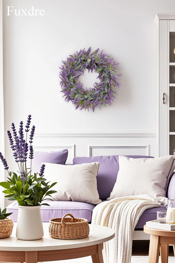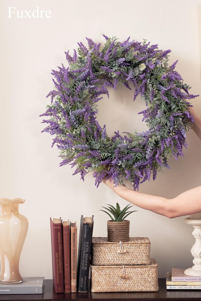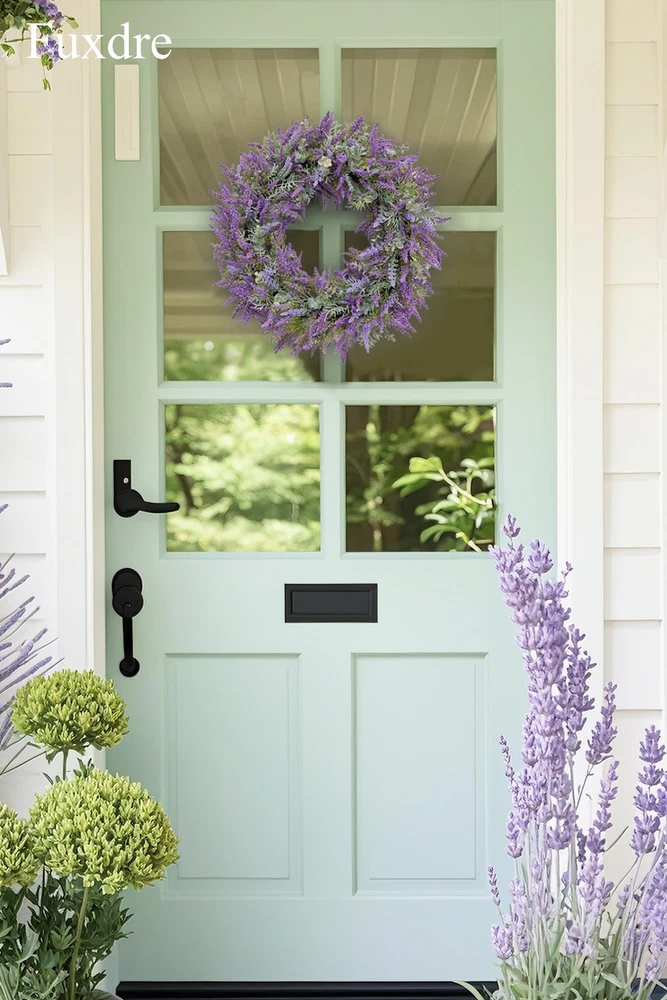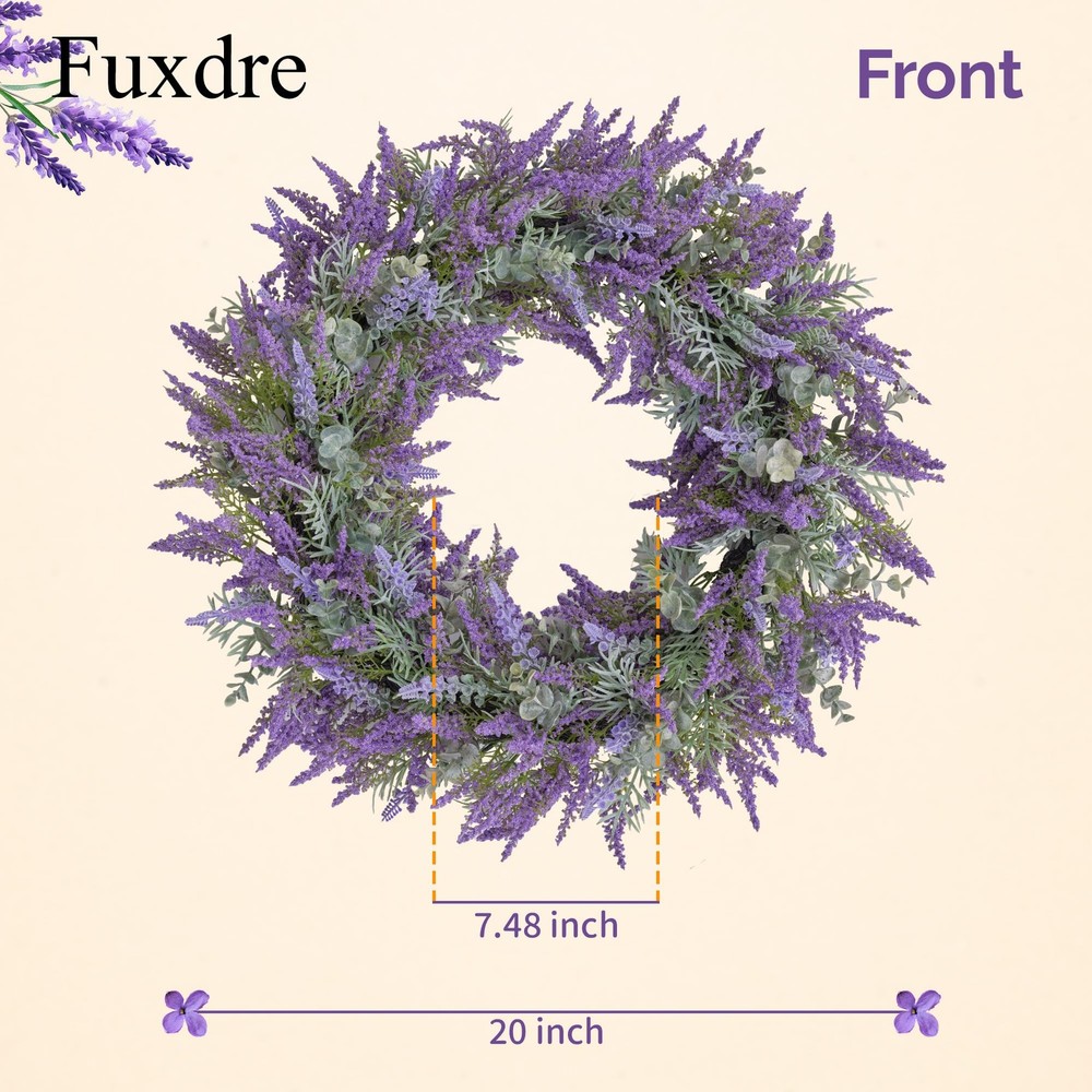 Spring Summer Wreaths for Front Door, 20 Inch Artificial Lavender Wreath for All Season Fall and Winter, Front Door Wreath Decor for Outdoor Home Party Wedding Wall Window Porch 【All-Season Elegance】20-inch purple lavender wreath for front door, crafted with realistic artificial lavender flowers that never fade or wilt. Vibrant bright purple color enhances farmhouse, rustic, or modern decor—perfect for year-round indoor/outdoor use (spring, summer, fall, winter) 【Premium Handmade Quality】Durable iron wire base wrapped with A+ grade plastic lavender leaves for a lush, full appearance. Weather-resistant and super realistic—ideal for front door, porch, window, wall, or wedding decor. 【Versatile 20-Inch Design】Large farmhouse wreath (20" outer diameter) with dense foliage for a statement look. Fits standard doors and spaces: entryways, back doors, yards, mantels, or party backdrops. 【Symbol of Joy & Gift-Ready】Lavender symbolizes happiness—perfect for Mother’s Day, weddings, birthdays, housewarming, or holidays. A thoughtful gift that brings vibrant color and charm to any home. 【Service Guarantee】's flower wreath products are carefully handmade. Contact us for worry free support - we guarantee the quality of every lavender summer wreath.