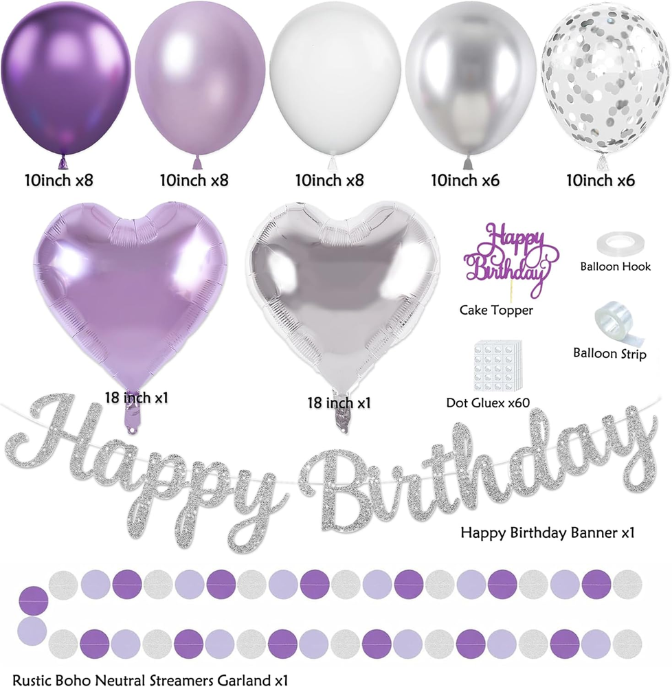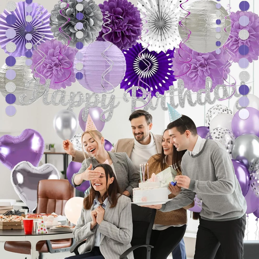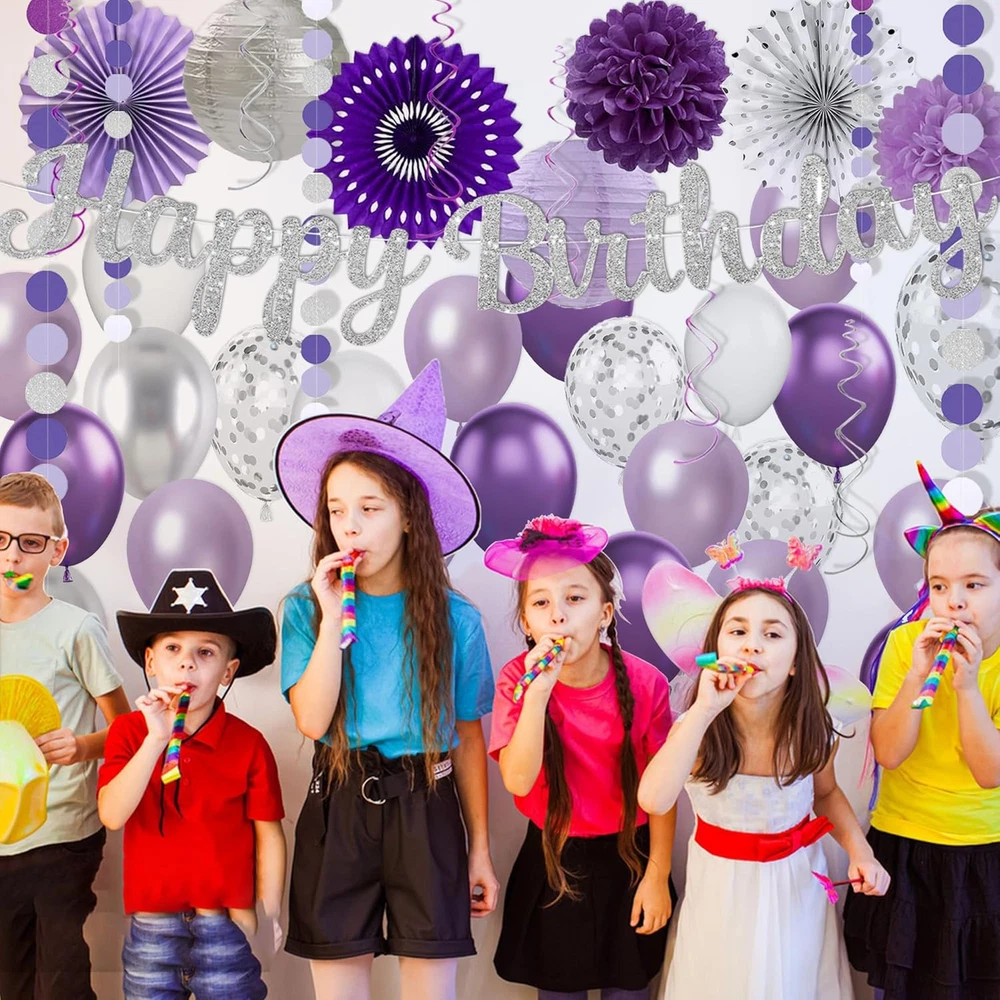 Store New Arrivals Add to Favorite View Feedback Contact Fast deliveries to the customer's home Quality customer service John Make the customers happy! Purple Silver Birthday Party Decorations Kit with Happy Birthday Banner, Paper Lanterns, Streamers, Tissue Pom Poms, Honeycomb Flower Fans, Silver and Purple Balloons, & More for Women Girls' Party Description All-in-One Party Decoration Kit: This complete kit includes everything you need to create an unforgettable celebration! It features a birthday banner, circle dot paper banner, 5 tissue pom poms, 3 paper lanterns, 3 paper flower fans, 42 purple and silver balloons, 6 hanging swirl streamers, and a birthday cake topper. Perfect for Purple and Silver Themed Parties: Designed with a stunning purple and silver color scheme, this decoration kit adds elegance and excitement to any birthday or special occasion, creating a vibrant and festive atmosphere. Easy to Assemble: With simple assembly instructions and premium quality materials, this kit is designed for easy setup. No stress or hassle – just quick and effortless decorating, so you can focus on enjoying the party. Versatile Decorations for Every Space: The variety of items in this kit makes it perfect for decorating party spaces, from the cake table to the backdrop or photo booth. It’s ideal for birthday parties, or any celebration. High-Quality Materials: All decorations are made from durable, high-quality materials to ensure they last throughout the entire event. The balloons, pom poms, and streamers are designed to stay vibrant and beautiful, making your party unforgettable. All-in-One Party Decoration Kit: Create Magic in Minutes! Transform any space into a festive wonderland with our Complete Party Decoration Kit—the ultimate solution for hassle-free, stunning celebrations! Perfect for birthdays, anniversaries, graduations, or any special occasion, this kit includes EVERYTHING you need to dazzle your guests and make memories that last a lifetime. WHY CHOOSE THIS KIT? ALL-INCLUSIVE & READY-TO-USE: No last-minute shopping! From banners to balloons, we’ve got you covered. ELEGANT PURPLE & SILVER THEME: Sophisticated colors that suit kids’ parties, teen celebrations, or adult gatherings. QUICK & EASY SETUP: Spend less time decorating and more time celebrating! WHAT’S INSIDE THE KIT? 1. Eye-Catching Wall Decor "Happy Birthday" Banner: Bold, pre-assembled letters for a focal point. Circle Dot Paper Banner & 6 Hanging Swirl Streamers: Playful accents for walls, tables, or photo backdrops. 3 Paper Lanterns & 3 Paper Flower Fans: Add dimension and whimsy to any corner. 5 Tissue Pom Poms: Fluffy, vibrant orbs for ceilings or centerpieces. 42 Purple & Silver Balloons: Elegant balloons in Purple and silver that add 2 Purple Silver Foil Star Balloons: Elegant star-shaped balloons in Purple and silver that add 3. Finishing Touches Birthday Cake Topper: Crown your dessert with a glittery "Celebrate" accent. Unit Count 62.0 Count Color Purple Silver Pattern Purple Silver Material Paper, Plastic, Cardstock Item Weight 12.6 ounces Manufacturer recommended age 3 years and up Occasion Birthday Package Dimensions 10 x 8.62 x 1.89 inches ABOUT US We offer the best prices around on high quality products. Our E-store includes media such as books, movies, music and games while offering electronics, toys, sporting apparel, clothing, tools, general home, garden items and more. SHIPPING We are always working hard to ensure your package arrives as soon as possible. Please understand that some factors like weather, high postal traffic, and the performance of shipping companies are outside of our control. We offer free shipping to the lower 48 states and ship within 2 business days of payment, usually sooner. We do not accept P.O. Boxes. Please provide a physical address. For shipping outside of the continental USA, we only use eBay's Global Shipping Program. The item is shipped to KY and then sent to the rest of the world. International customers are responsible for all duties and taxes. Continue to 'check out' to calculate costs for shipping the item to your country. Messages regarding eBay's Global Shipping Program MUST be directed at eBay EXCLUSIVELY. RETURNS We offer a 30-Day Return Policy on items in which you are not completely satisfied with. You have the option of a full-refund or an exchange of the item. No returns are available on items shipped outside of the USA PAYMENT We accept PayPal. CONTACT US This page content is yet to come Please ad us to your favorite seller and visit again later Thank You CUSTOMER SATISFACTION We try our very best to make sure every customer is completely satisfied. If there's a problem, message us! We're happy to help. WE ACCEPT