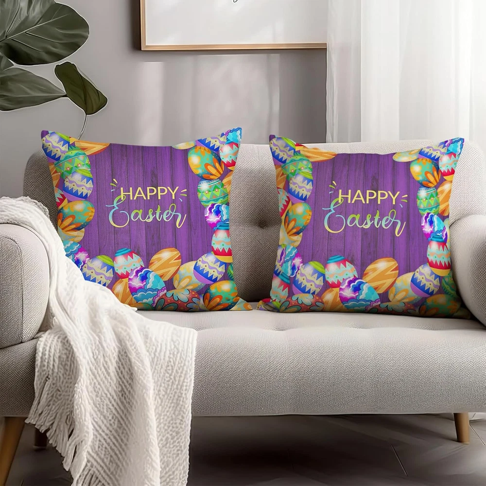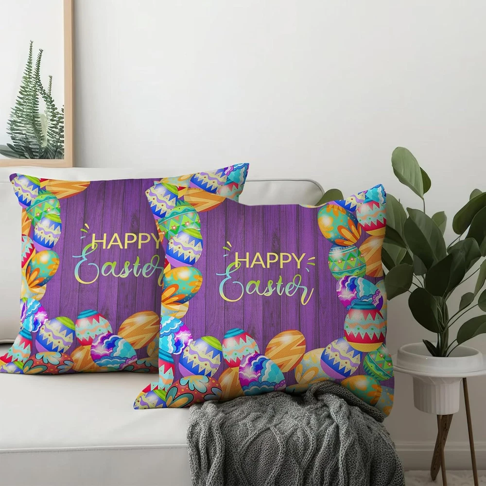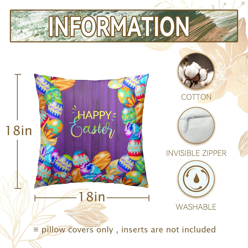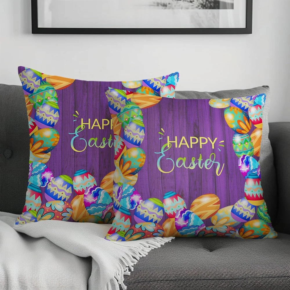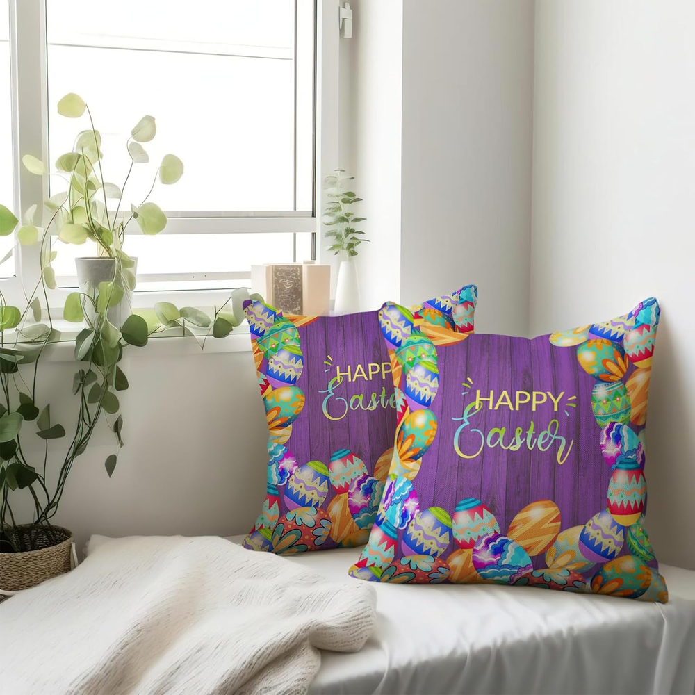 Material: Linen Recommended Uses For Product: Sofa, Bed, Chair, Living Room, Bedroom, Patio, Porch, Car, Campin Is Euro Pillow Size: No Type: Does not apply Style: easter Fabric Type: Linen Theme: Easter Item Weight: 7.7 ounces Pattern: Print Unit Count: 2.0 Count Color: Purple Easter Pillowcase Item model number: 1 Closure Type: Zipper Weave Type: Linen Weave Number of Items: 2 Seasons: Spring Brand: Does not apply Size: 18" x 18" (Pack of 2) Room Type: Bedroom Shape: Square Special Feature: Fade-Resistant, Warm Touch Country of Origin: Italy Product Dimensions: 18"L x 18"W Product Care Instructions: Hand Wash or Machine Wash (Cold Water, No Bleach, No Iron) Batteries required: No