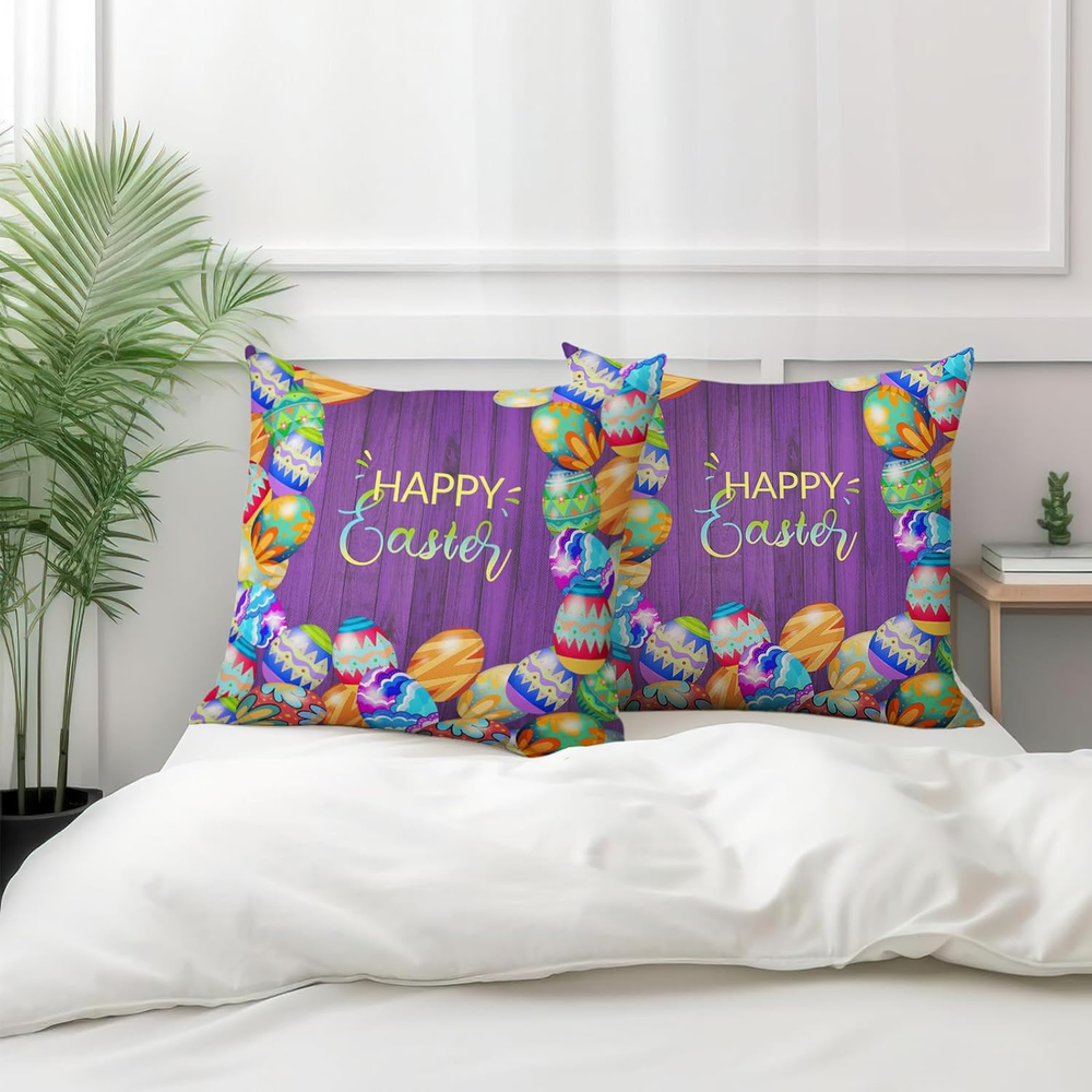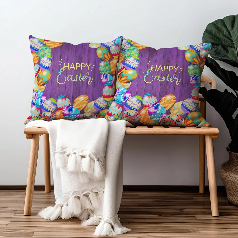 Purple Wood Grain Easter Day Throw Pillow Cover for Happy Easter Decor