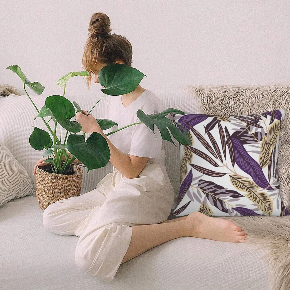 New sofa pillow pillowcase with purple element and leaf print double-sided pillowcase 【 Washing Instructions 】 It can be hand washed or machine washed at room temperature. Please do not bleach or iron. 【 Special note 】 Due to different measurement methods, an error within 1-3c