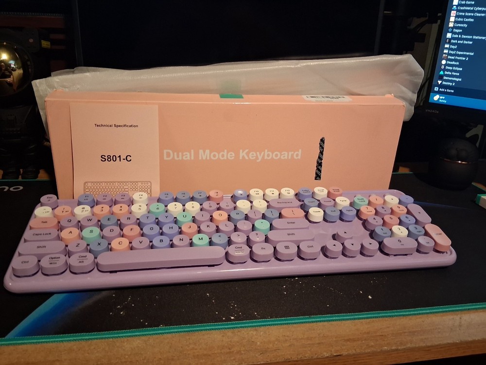 Item Height:1.89seller:Does Not ApplyBrand:Does Not ApplyItem Width:5.71Connectivity:BluetoothMPN:Does Not ApplyCountry of Origin:ChinaCountry/Region of Manufacture:ChinaItem Length:16.1Date First Available:May 13, 2024Special Feature:Round Key, PortableMaterial:PlasticRecommended Uses For Product:Personal, Student, BusinessCustomer Reviews:4.5 out of 5 starsItem Weight:1.65 poundsStyle:RetroNumber of Keys:100Keyboard Layout:QWERTY (Standard)Package Dimensions:16.1 x 5.71 x 1.89 inchesColor:Wireless Bluetooth PurpleEAN:Does Not ApplyManufacturer:Does Not ApplyCompatible Devices:Laptop, PC, TabletKeyboard Description:MultimediaType:CompactKeyboard Language:EnglishConnectivity Technology:USBModel:S801-CFeatures:PortableUPC:Does Not Applygtin13:Does Not Apply