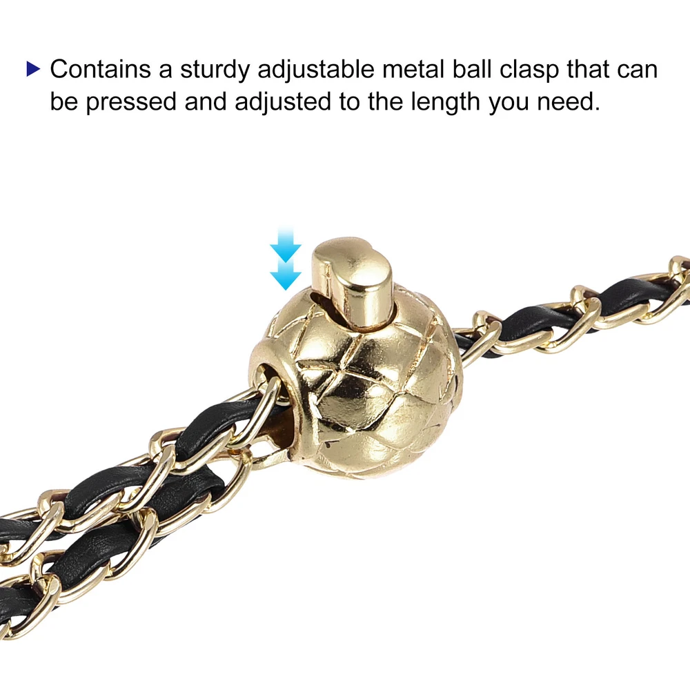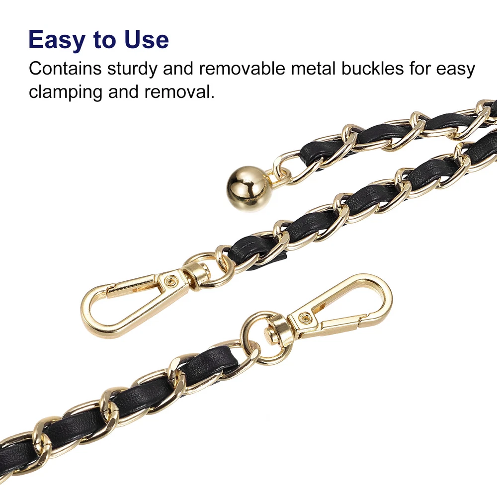 Document Descriptions:The chain strap with a suitable size for you to match your bag. The length of the chain is 1200mm (47.24 inches), the width of the chain is 7.5mm (0.31 inches)Made of PU and iron material that is smooth and strong, with high hardness, and has perfect corrosion resistance. Surface plating is not easy to oxidize and fade.Two removable metal swivel clasps and a sturdy metal ball buckle are included on this chain. You can easily clamp two sides of buckles to your bags' D ring and adjust the ball buckle to the length you need. If you don't need this chain, you also can easily remove it from your bag. This classic chain strap can be used as a bag strap for bag accessories and decorations such as tote bags, handbags, purses, cross body bags, shoulder bags, etc. Instead of a one-size-fits-all style, you can design new bags with different looks and styles.Product Specifications:Material: PU, IronColor: Black Leather, Gold Tone ChainFinish: ElectroplatingLength: 1200mm/47.24"Width: 7.5mm/0.3"Weight: 156gUsed for: Bag Replacement StrapPackage Included:1Pcs x Iron Flat Chain StrapWarm Tips:Because the connection between the chains is too thin, it may catch hair. Beware of it and buy it with caution. Also, please check that our chain length is the right size for your bag before ordering. Purse Chain Strap, 47 Inch Iron Adjustable Chains Replacement Black/Gold Tone Descriptions: The chain strap with a suitable size for you to match your bag. The length of the chain is 1200mm (47.24 inches), the width of the chain is 7.5mm (0.31 inches) Made of PU and iron material that is smooth and strong, with high hardness, and has perfect corrosion resistance. Surface plating is not easy to oxidize and fade. Two removable metal swivel clasps and a sturdy metal ball buckle are included on this chain. You can easily clamp two sides of buckles to your bags' D ring and adjust the ball buckle to the length you need. If you don't need this chain, you also can easily remove it from your bag. This classic chain strap can be used as a bag strap for bag accessories and decorations such as tote bags, handbags, purses, cross body bags, shoulder bags, etc. Instead of a one-size-fits-all style, you can design new bags with different looks and styles. Product Specifications: Material: PU, Iron Color: Black Leather, Gold Tone Chain Finish: Electroplating Length: 1200mm/47.24" Width: 7.5mm/0.3" Weight: 156g Used for: Bag Replacement Strap Package Included: 1Pcs x Iron Flat Chain Strap Warm Tips: Because the connection between the chains is too thin, it may catch hair. Beware of it and buy it with caution. Also, please check that our chain length is the right size for your bag before ordering. Hot Item Payment 1.We accept eBay payment . 2.Payment must be received within 7 business days of auction closing. Shipping 1.We ship to your eBay or Paypal address. Please make sure your eBay and Paypal address is correct before you pay. 2.Items will be shipped within 1-3 business day when we received payment. 3.Delivery time depends on destination and other factors. Description Policy Purse Chain Strap, 47 Inch Iron Adjustable Chains Replacement Black/Gold Tone Descriptions: The chain strap with a suitable size for you to match your bag. The length of the chain is 1200mm (47.24 inches), the width of the chain is 7.5mm (0.31 inches) Made of PU and iron material that is smooth and strong, with high hardness, and has perfect corrosion resistance. Surface plating is not easy to oxidize and fade. Two removable metal swivel clasps and a sturdy metal ball buckle are included on this chain. You can easily clamp two sides of buckles to your bags' D ring and adjust the ball buckle to the length you need. If you don't need this chain, you also can easily remove it from your bag. This classic chain strap can be used as a bag strap for bag accessories and decorations such as tote bags, handbags, purses, cross body bags, shoulder bags, etc. Instead of a one-size-fits-all style, you can design new bags with different looks and styles. Product Specifications: Material: PU, Iron Color: Black Leather, Gold Tone Chain Finish: Electroplating Length: 1200mm/47.24" Width: 7.5mm/0.3" Weight: 156g Used for: Bag Replacement Strap Package Included: 1Pcs x Iron Flat Chain Strap Warm Tips: Because the connection between the chains is too thin, it may catch hair. Beware of it and buy it with caution. Also, please check that our chain length is the right size for your bag before ordering. Hot Item Payment 1.We accept eBay payment . 2.Payment must be received within 7 business days of auction closing. Shipping 1.We ship to your eBay or Paypal address. Please make sure your eBay and Paypal address is correct before you pay. 2.Items will be shipped within 1-3 business day when we received payment. 3.Delivery time depends on destination and other factors.