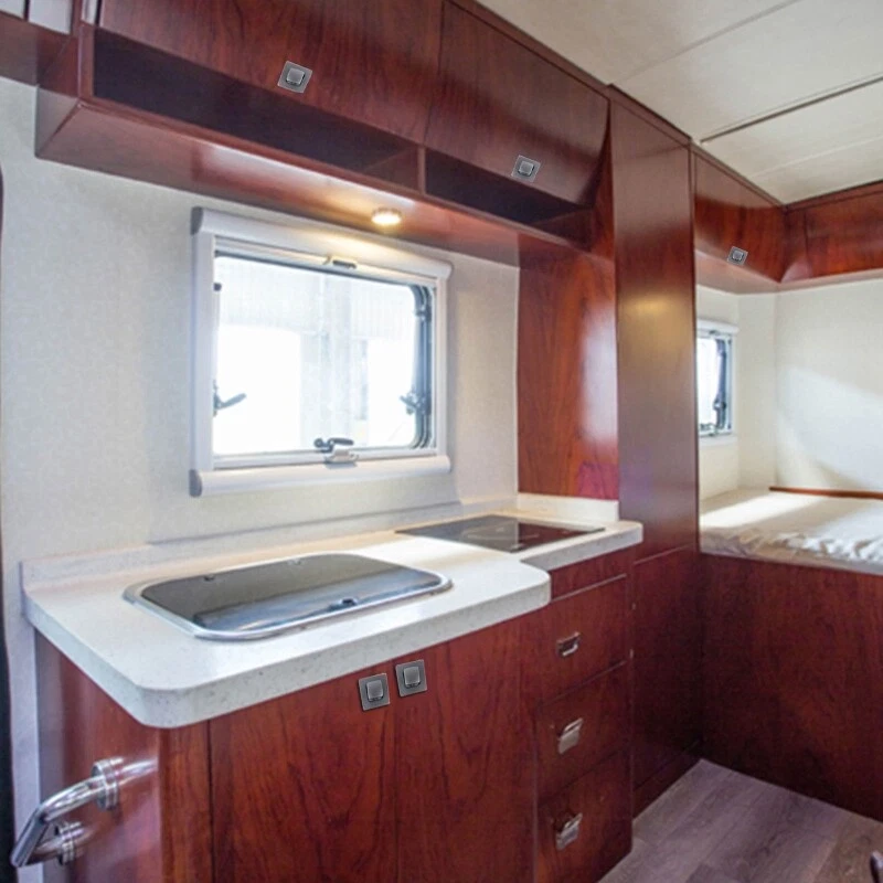 Features: This lock is a new type with handle button type ship, yacht, rv. Furniture door lock. The lock itself with both locking function also handle function. Suitable for all kinds of furniture has the beautiful appearance, color elegant, simple installation, to use. To avoid all kinds of yacht, rv shaking in the process of moving and cause indoor furniture cupboard door open. The lock just press the button, lock tongue down, pull the button to open the door, buttons in addition to can be used for opening and locking doors, also can use when shake handshandle. Specifications: Shape:Circle,Rectangle Size:Approx.77.8x45mm/3.06x1.77in Net Weight:91-99g Package Includes: 1x Push Button for note: Please allow 1mm errors due to manual measurement. Due to the difference between different monitors, the picture may not reflect the actual color of the item.