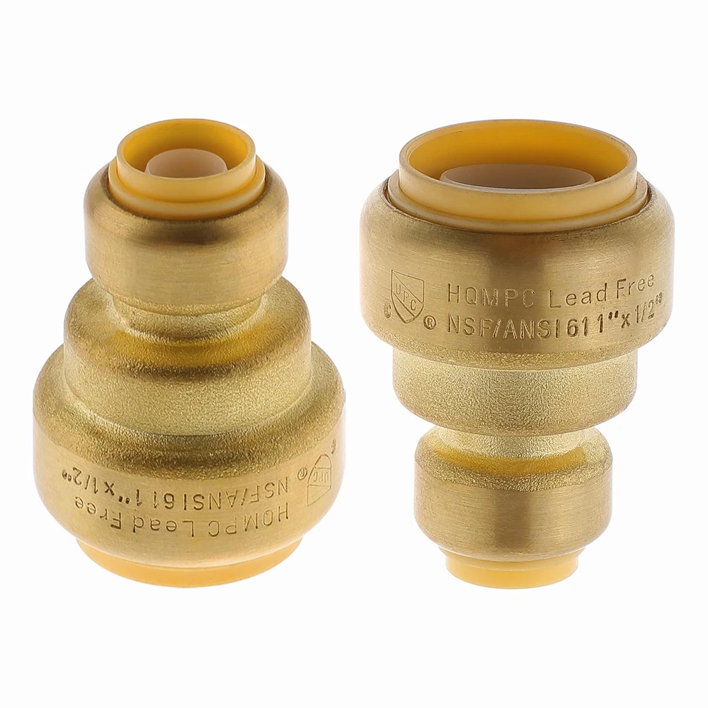 Package Includes:1" x 1/2" Pushfit Reducing Coupling (2 pcs) +1 Disconnection Clip Applicable Type:Pex Pipe Push To Connect fittings Push to connect to Copper, PE-RT, PEX, CPVC or brass pipe. Lead Free Brass: Pex Pipe Fittings High quality lead free bras, healthy and safe. Certification:Push in fititng Certified & Compliant ,UPC, ANSI/NSF-61, push fit fittings can withstand up to 200 PSI and 200°F.