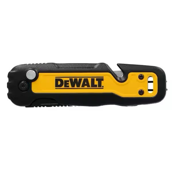 About This Product Take on a wide range of cutting applications with the DEWALT Push and Flip Folding Utility Knife with Storage. Ergonomically designed to be carried comfortably on tough jobs this knife features a one-handed flip-to-open operation and 5-blade on-board storage. With the flick of a wrist, access the blade fast. A quick-slide-and-click blade replacement system helps blade retention and helps prevent unintentional blade release. Engineered with a metal handle for durability this knife delivers high-performance for a variety of demanding tasks. 1-handed operation - access the blade quickly with a smooth push-and-flip opening that allows for 1-handed operation Limit unintentional blade release- help prevent unintentional blade release with a secure blade lock Quick change lever - help avoid accidental engagement with push up lever Smooth blade changes - replace blades fast with a slide-and-click press free insert Durable design - resist wear-and-tear with a metal handle that delivers lasting durability Internal blade storage - keep replacement blades close at hand with on-board storage for up to 5 blades Comfortable carry - take on tough jobs with an ergonomically-designed handle and reversible deep carry wire pocket clip Integrated tether hole - tether when working at height with integrated tethering capability Gut hook - make quick cuts even while the knife is closed with the gut hook Return Policy Product Information Internet # 329048575 Model # DWHT10992 Store SKU # 1011046309