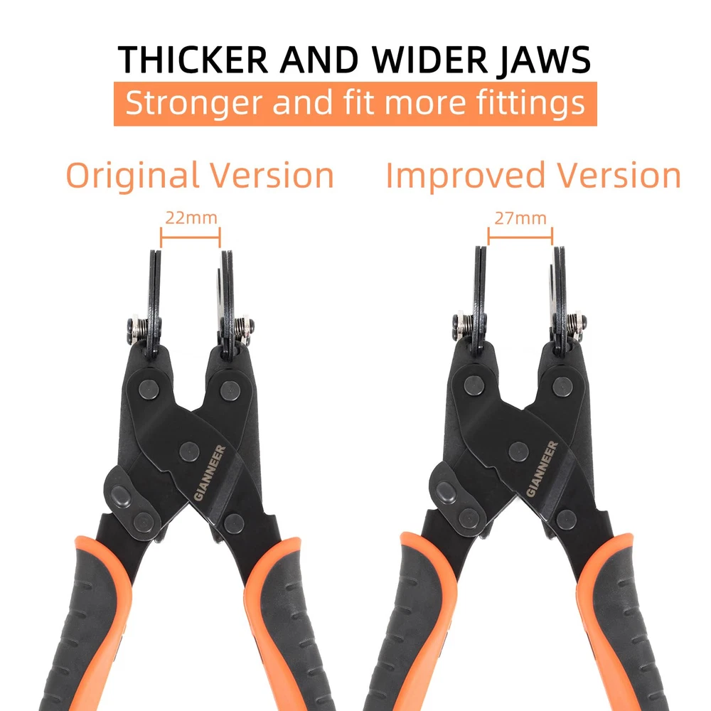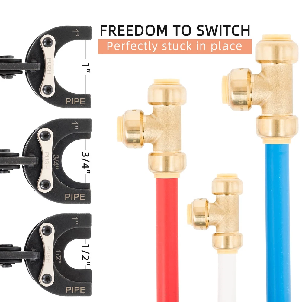 THREE SIZE IN : This push fittings removal tool is designed to disconnect 3 sizes of plumbing fittings (1”,1/2”, 3/4”). It is suitable on pipes such as copper, PEX and CPVC and is with various brands of fittings. UNIQUE DESIGN: The new design of the interchangeable plate allows you to freely switch to suit pipes of different sizes, and it can reach the pipe perfectly than other release tool. HOW TO USE: Insert the push-fit disconnect tong tool over the fitting and pipe, then squeeze the release ring and pull the pipe off. This quick disconnect tool will save your time and fingers, bringing great convenience to your plumbing work! IMPROVED VERSION: The improved pex tool features thicker and wider jaws which is stronger and can fit more types of push to connect fittings. HIGH QUALITY AND DURABLE: This removing tool is made of superior S50C steel, which is highly hard and resistant to rust and corrosion. It’s suitable for various operating environments and has long service life.