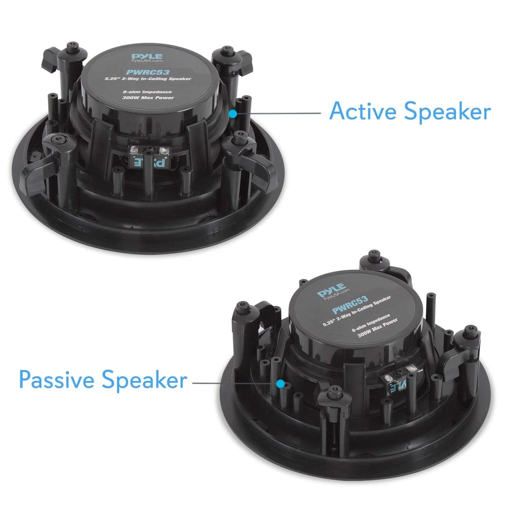 Pyle 6.5” Ceiling Wall Dual Speakers - 2-Way Full Range Stereo Sound (Pair) Universal Flush Mount Design w/ 70Hz - 20kHz Frequency Response 480 Power Watts Peak & 2 Magnetic Speaker Grills PWRC63 6.5” 2-WAY SPEAKER: Pyle 6.5” ceiling wall speaker produces 2-way full range stereo sound. The product is made environmentally friendly ABS construction perfect to any room without cluttering floor space. This type of speaker is a passive speaker FLUSH MOUNT DESIGN: A universal pair of flush mount design for any flat surface, in-wall or in-ceiling installation. The product includes cut-out dimension 7.9” in diameter and 2.95” in mounting depth for quick and easy installation 70Hz - 20kHz FREQUENCY RESPONSE: Pyle 8” speaker system has a 1/2” high compliance polymer tweeters and frequency response. This flush mount speaker is pack with exceptional 8 ohm impedance rating and impressive 480 watts power handling capability 480 WATTS PEAK: Pyle in-wall speaker system were carefully combined to reproduce sound clearly with outstanding responsiveness. It is made polypropylene cone with rubber edge perfect for custom audio applications used for home, office and business 2 MAGNETIC GRILLS: The speaker has 2 convenient magnetic speaker grill and integrated clamp-type mounting brackets for quick attachment. It is a flat and thin, slim-style removable speaker grill for quick detachment and mountable in any flat surface