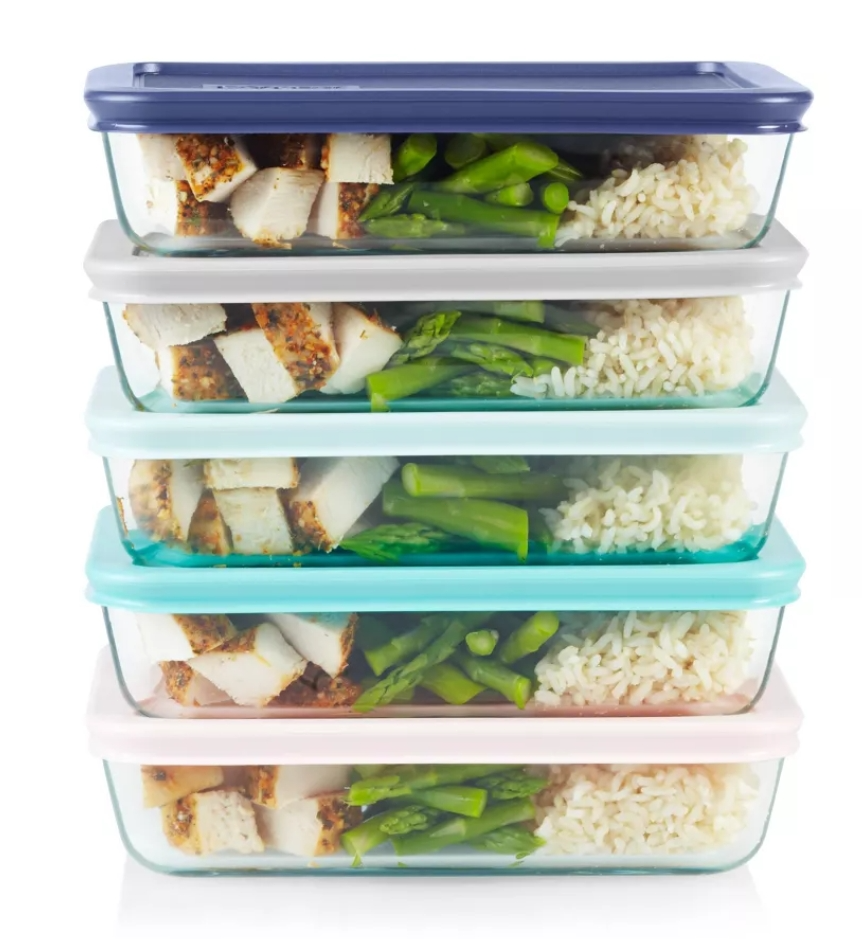 Pyrex 10-Piece Clear Glass Meal Prep Set with Plastic Lids for Food Storage