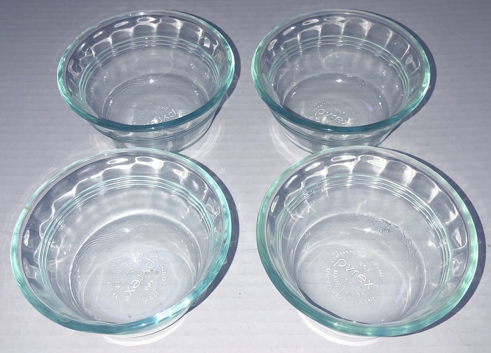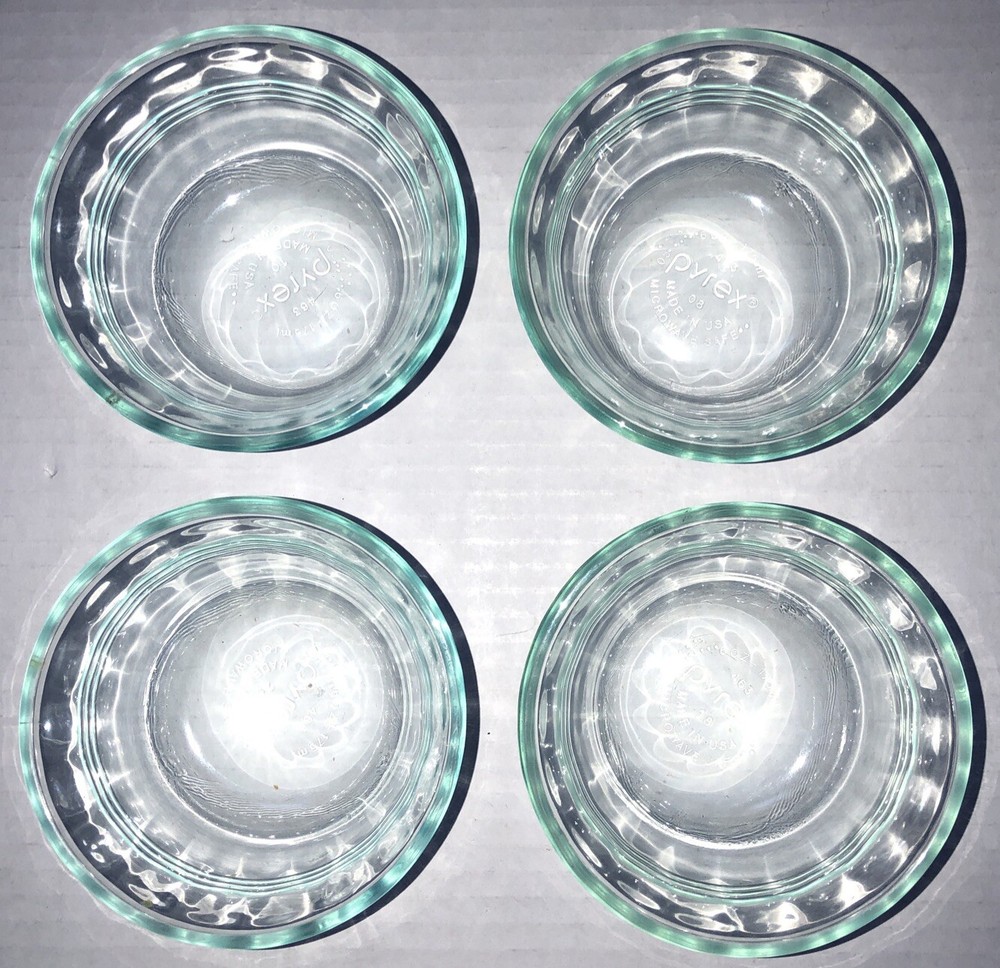 Type of Glass:PyrexOriginal/Licensed Reproduction:OriginalCountry/Region of Manufacture:United StatesBrand:PYREXHandmade:NoOriginal/Reproduction:Vintage OriginalFinish:GlossyEra:Late 20th Century (1970-1999)MPN:463Number of Items in Set:Four-PieceItem Weight:N/AItem Length:N/Agtin13:Does not applyGlassware Type:PYREXType:BowlSet Includes:4 BowlsVintage:YesItem Depth:N/AShape:RoundItem Height:2"Material:GlassManufacturer Warranty:NoneUPC:Does not applyProduction Style:N/AModel:463Occasion:All OccasionsFeatures:Dishwasher Safe, Microwave Safe, Oven SafeColor:ClearBackstamp:ImpressedProduction Technique:Fused GlassItem Diameter:4”