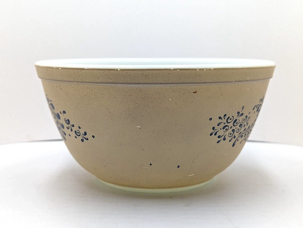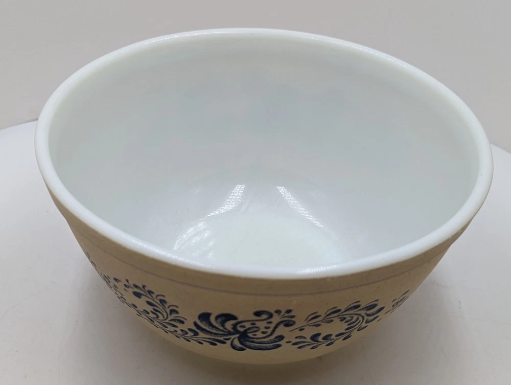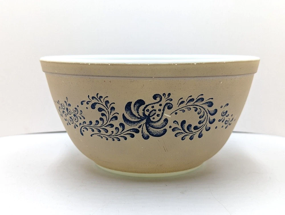 Pyrex Corning 1.5 Qt Mixing Bowl Homestead Blue Onion Pattern VTG 1976-1980. There are some scratches on the outside of the bowl - please see the last 4 photos for reference. There are no chips or cracks. All of my items are carefully packed for shipping, no matter their value - $5 items are wrapped with the same care as a $200 item. My goal is to have your purchase arrive safely. I use recycled packaging when possible but mostly use new, high quality products so your item will arrive intact without damage. Large, heavy and fragile items are harder to use combined shipping with but just ask if you would like to purchase more than one item and I am more than happy to do so if feasible. If not, maybe we can work out a shipping discount. Thank you and hopefully you will visit my store again!