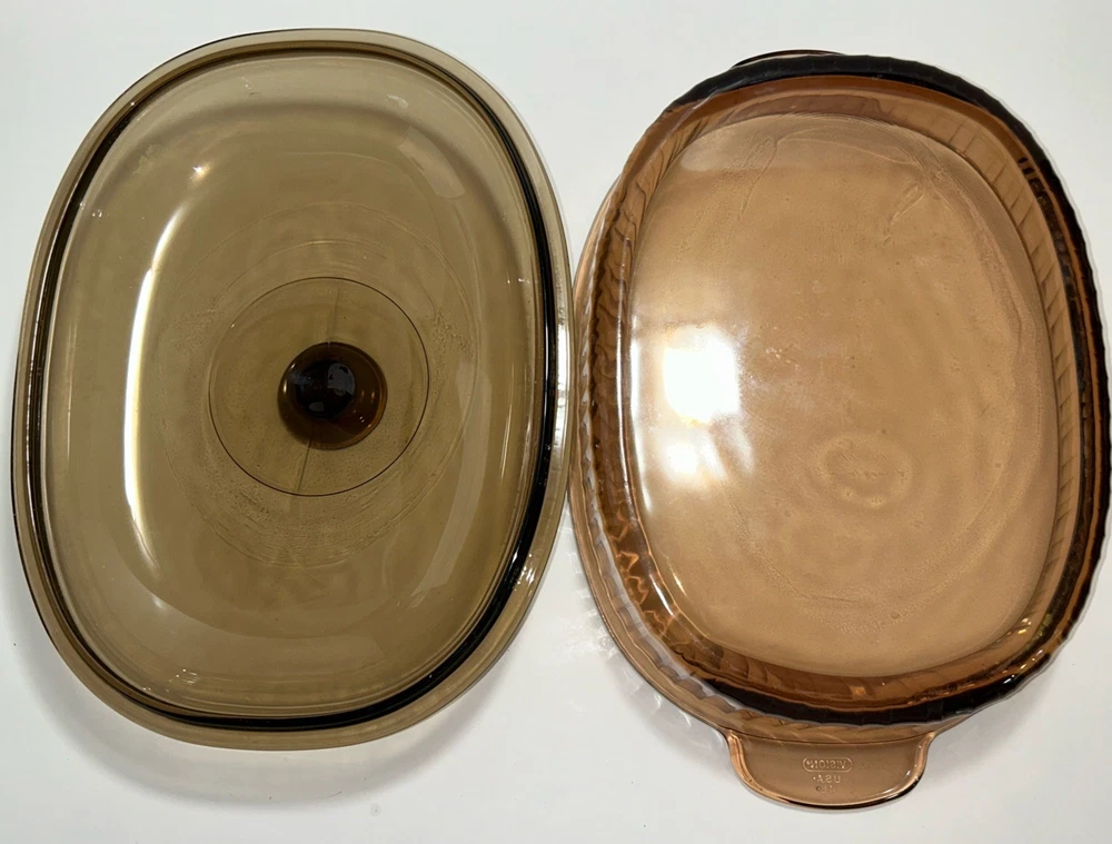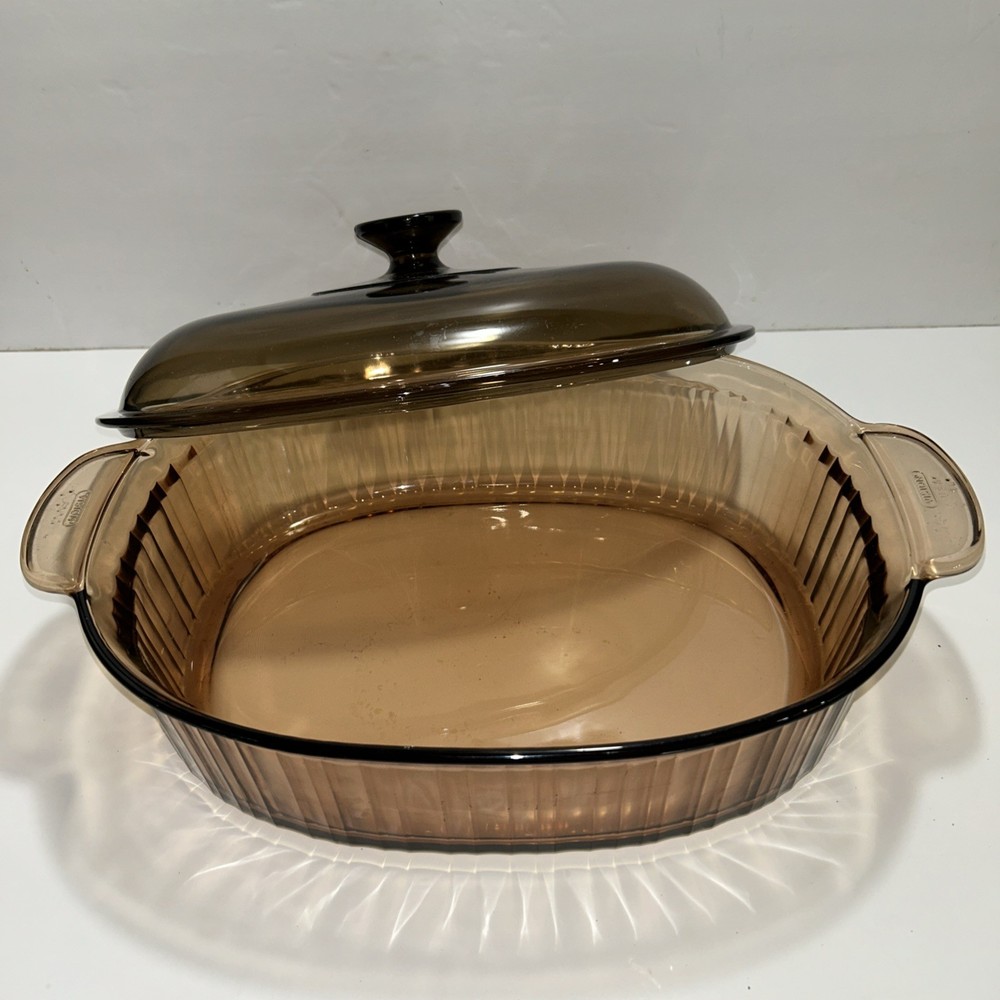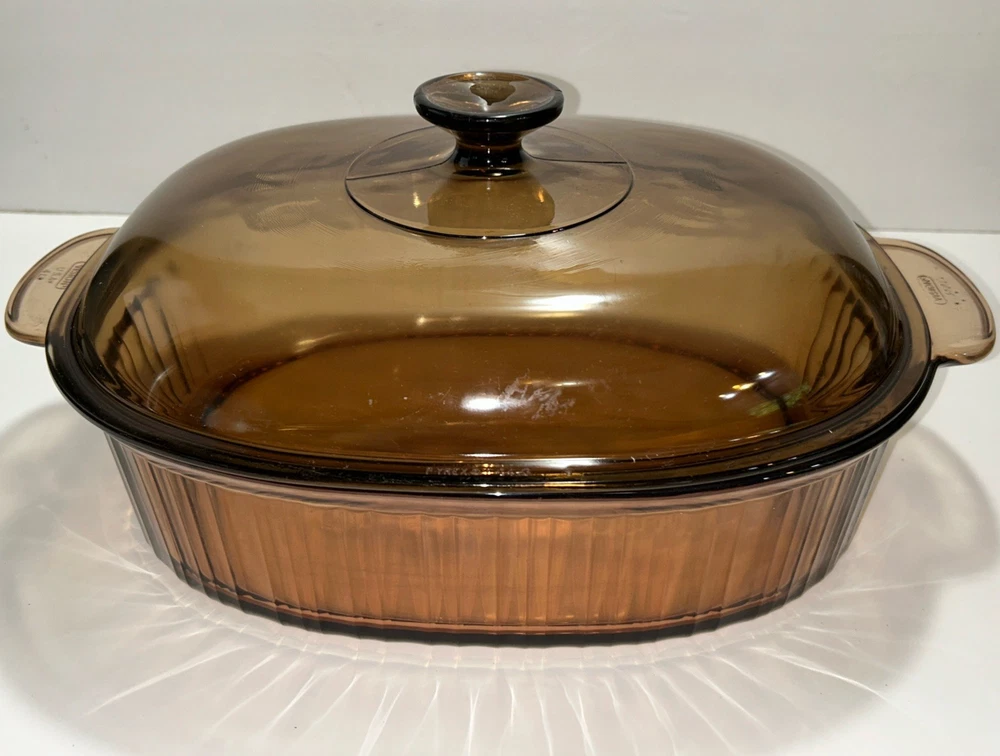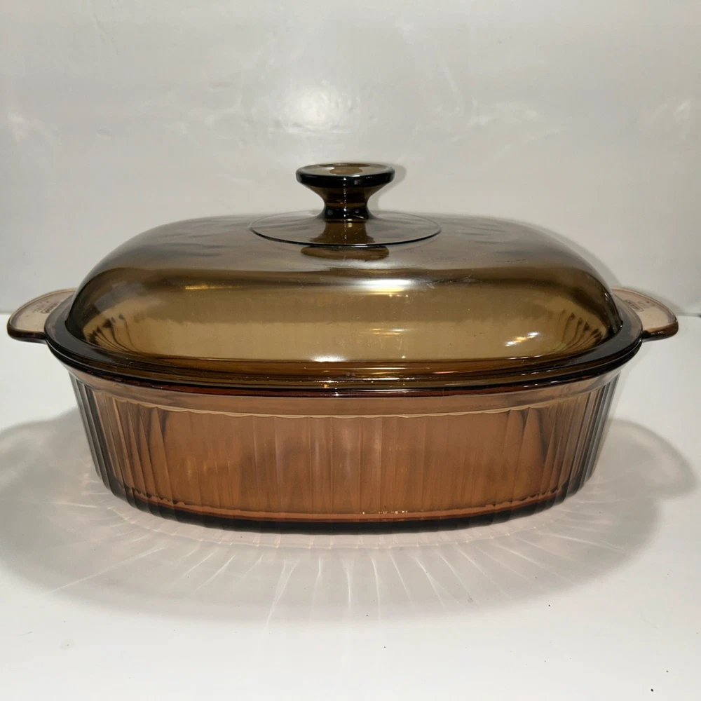 Pyrex Corning Vision Brown Amber 4L Covered Casserole Dutch Oven Baker w/ Lid