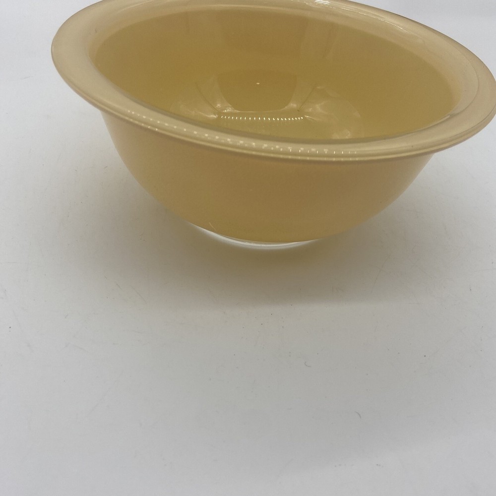 This beautiful 7 inch Pyrex mixing bowl is a must-have for every kitchen. Made of high-quality glass, this bowl is perfect for all your mixing needs. Its stunning gold color adds a touch of elegance to your kitchen décor. With a brand like Pyrex, you can trust that this bowl is durable and reliable. Its size is perfect for making small batches of your favorite recipes. Whether you're a seasoned chef or just starting out, this bowl is a great addition to your kitchen. Used Very Good - No Chips or Cracks - has some scratches. See pictures.
