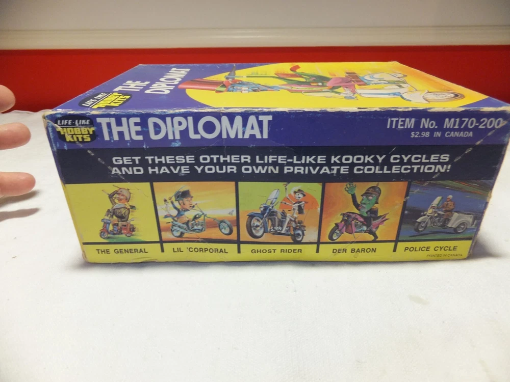 Retired and realized I have more models than time so letting go of the collection. Next I will be listing a variety of Motorcycle Trikes all different brands. Up for auction is the 1970 version of Kooky Cycle The Diplomat the model has been inventoried and is complete. This model in the Kooky Cycle series is very rare. Please see the pictures for further description. No international shipping please. If you have any questions send me a note. Look for my other auctions. 391