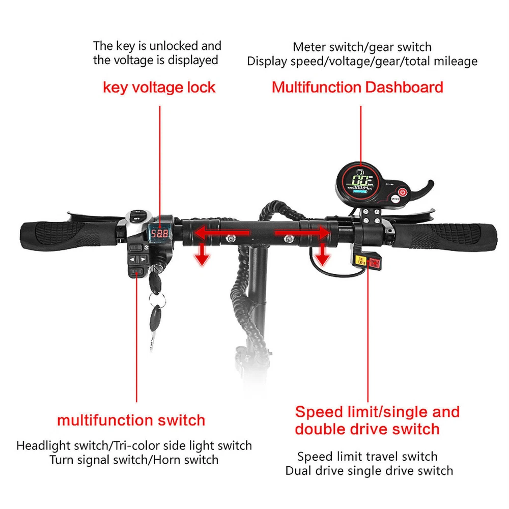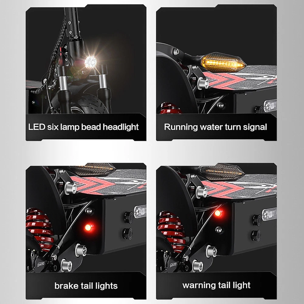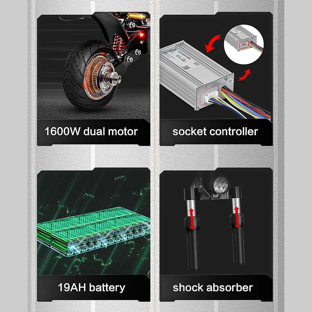 Description Scooter model: Q7Pro Battery capacity: 52V19A988Wh Motor high-speed motor: 2X1600W Tire type: dual-purpose tire, 10 inches in diameter and 90MM in width. Top speed (km/h): 70km/h. Cruising range (km): 60-70km Applicable terrain: highway, urban cross-country Boot equipment: voltage key lock Headlights: six-lamp bead headlights Charging: Double charging ports and single charger. Service temperature: above-30℃ Maximum climbing degree: 35 Brake type: hydraulic disc brake, brand: Dengfeng Body material: aluminum alloy Body color: main body black Maximum load-bearing capacity of car body (kg): 200kg. Pedal distance from the ground (cm): 17cm Pedal width x length: 22.5CMX53CM Front shock absorption: inverted long-distance hydraulic shock absorption Rear shock absorption: hydraulic shock absorption Controller: 52V28A*2 Packing box size (length, width and height cm): 128 x 30 x 56 cm Vehicle dimensions (mm in length, width and height): the unfolded dimensions are 116*22.5*102-120CM. Folding size (mm in length, width and height): folding size 123*22.5*46CM. Net weight (kg): 30.2kg. Gross weight (kg): 38.5kg. CE: yes FCC: Yes. ROHS: Yes. Other certifications: Yes Motor brand: Gionee Motor model: 10 inches. Rated voltage (V): 52V Rated power (W): 2 * 1600W Battery capacity (ah): 52 v 19 a 988 wh Rated voltage (V): 52V Charging input voltage (v): 58.8 v. Rechargeable times of battery: 1500 times Charging time (h): 4-5h Battery protection board: 60 years. Charger model: 58.8V3A Rated input voltage (V): 100-240 V. Rated output voltage (V): 58.8 V (1V) Rated current (a): 3.0A (0.2A) Controller type: integrated socket controller Working current (a): 28 1A Operating voltage (V): 52V Undervoltage (v): 42v Instrument type (LCD/LED/OLED): LCD. Instrument display parameters: Yes USB output interface: yes Gear: three gears are adjustable. Instruction: Yes. Charger: 58.8V3A charger X1 Seats: one set of seats Front bag: EVA black car 2L waterproof bag Other tools: Hexagon screwdriver set, chain lock, pump, mobile phone bracket. The package includes "vehicle *1, seat *1, charger *1, Hexagon screwdriver set *1, mobile phone bracket *1, 2L black EVA bag " Friendly Tips: 1.Due to the light and screen difference, the item's color maybe slightly different from the pictures. Please understand. 2.Please allow 1-2cm differences because of the manual measurement. Payment 1. We only accept payment through Payoneer. 2. Please make sure you have a valid account prior bidding. 3. Please pay for your item within 7 days after you order. Shipping 1. Buyer take responsibility in import / tax cost (not included in item price) 2. Pls contact with us to confirm extra cost if you need to upgrade the shipping option 3. If there's any concern about shipping, pls contact with us for further confirmation Return Policy 1. Refund or Replacement request is available within 30 days after parcel received and returning the item as the same condition as received. Please contact us to request a return authorization. Your name, auction number, and reason for return should be included in the message. 2. All items returned must contain all original packaging materials. Please repack the item carefully. Items returned will be tested and a new replacement will be shipping to buyer punctually. 3. In the event that a suitable replacement is not available then a refund will be issued. Shipping, handling and insurance fees are non-refundable. 4.If the item was found non-defective, the item will be sent back to buyer at buyer's expense. Items returned without authorization will be refused and returned to sender/buyer. 5. Buyer pay the shipping cost if the item damaged artificially, or buyer say "not like it", "size/color was different per they imaginary", etc. Contact us Please contact us via ebay message any time, all questions will be replied within 12 working hours. Customer Support Online : 9:00am - 22:00pm (GMT +8) Everyday