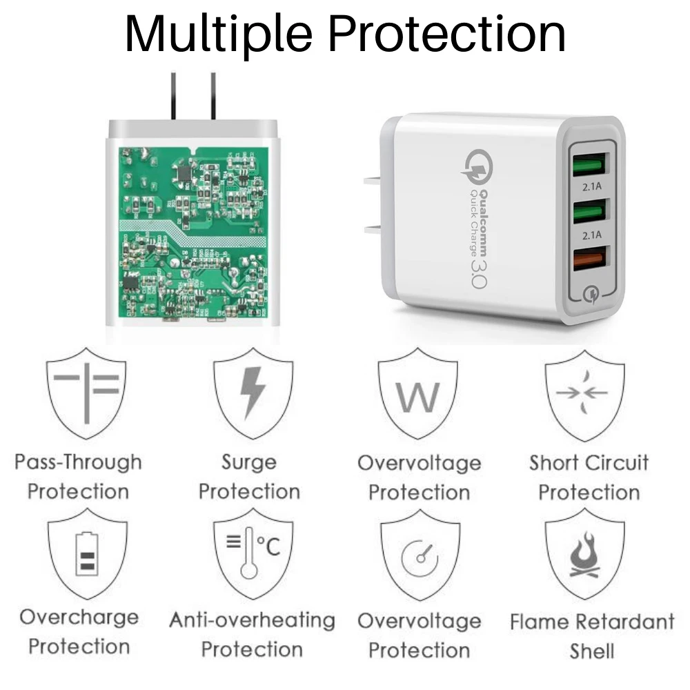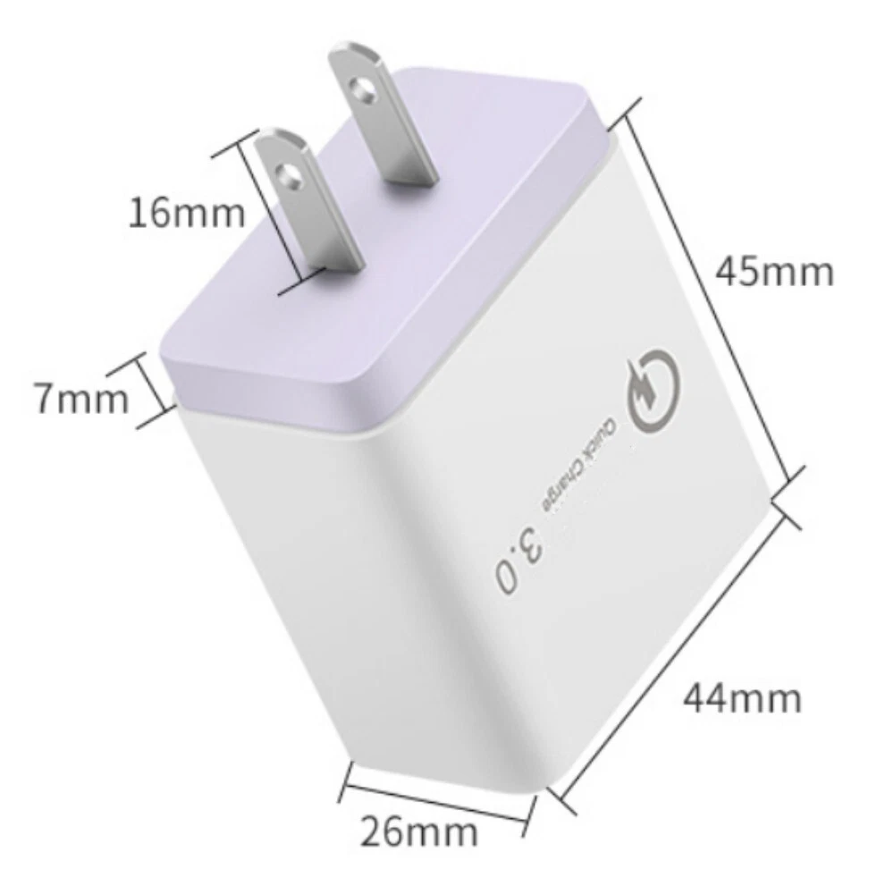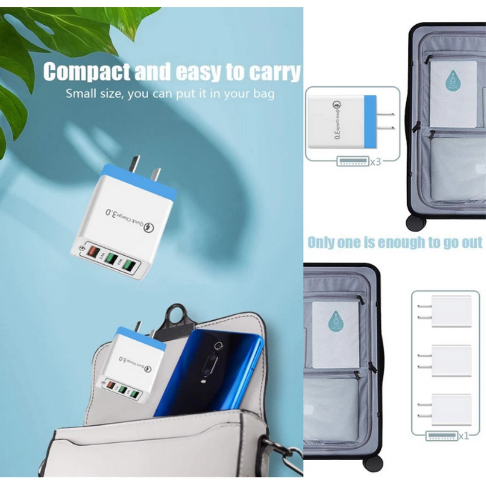 Quick Charger with 3 Ports ---ONE quick charging port: support quick charge enabled devices up to 4 times faster than conventional 1A adapter, also compatible with Quick Charge 2.0/1.0 enabled Android phones. ---TWO standard 2.1A charging ports: can charge with high- speed to your quick charge limited USB devices. Maximize the charging efficiency for all your charge devices, make it great outlets saver! Safe Charging First-Multi Ports USB charging block features with Built-in safeguards to protect your devices against any dangers like over-current, over-voltage, and overheating. Intelligent IC identification technology can automatically detect charging equipment and output for the optimal current for devices, ensuring completely safe charging environment. Super Travel Ready-Foldable prongs and lightweight design make it the best travel charger to put in your pocket or bag during business trips or vacations. Just carry one wall charger you can charge 3 devices at the same time, or share charging ports with others, bring you unbelievable convenience anywhere like travel, home, office charging Smart IC Chip- Build-in smart chip, the Wall Charger will automatically recognize any USB devices and maximize the output current up to 10W. Type: QC 3.0 Quick Charging Wall Charger Adapter Station Material: ABS+PC Plug Type: US Plug Interface: 3 / 4 X USB Input: AC 100V-240V, 50/60Hz, 0.5A Output: 5V/3A, 9V/2A, 12V/1.5A QC3.0 Output: DC 5V/2.4A, 9V/1.8A, 9V-12V/1.5A Color:White Compatible With: For iPhone 1 4 ,1 4 pro,14 pro max For iPhone 13,1 3 pro,13 pro max For iPhone 12,12 pro,12 pro max For iPhone 11,11 pro,11 pro max For iPhone XS, XS Max, XR For iPhone X, 8, 8 Plus For Samsung Galaxy S20 ALL For Samsung Galaxy S10, S10+ For Samsung Galaxy S9, S9+ For Samsung Galaxy S8, S8 For Samsung Galaxy S7, S7 edge For Samsung Galaxy S6, S6 edge, S6 edge For Samsung Galaxy Note 9, 8, 7, 5 For Google Nexus 7, 6, 5, 4 For Nokia Lumia 1520, 1020, 930, 929, 928, 925, 920, 830, 820, 8Sirocco For LG G2, G3, G6 , V30, V30s ThinQ For Sony Xperia XZ2, XZ2 Compact For HTC Droid DNA, 8X For Huawei Mate RS For Xiaomi MIX 2S For YOTA Phone 2 For Motorola Droid Turbo 2 Package Included: 1/2/3/5/10/20/50/100x USB QC3.0 Quick Charge Wall Charger