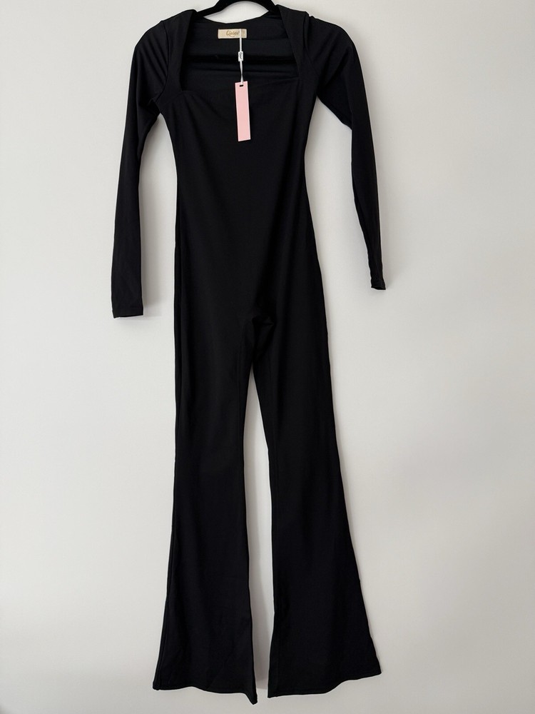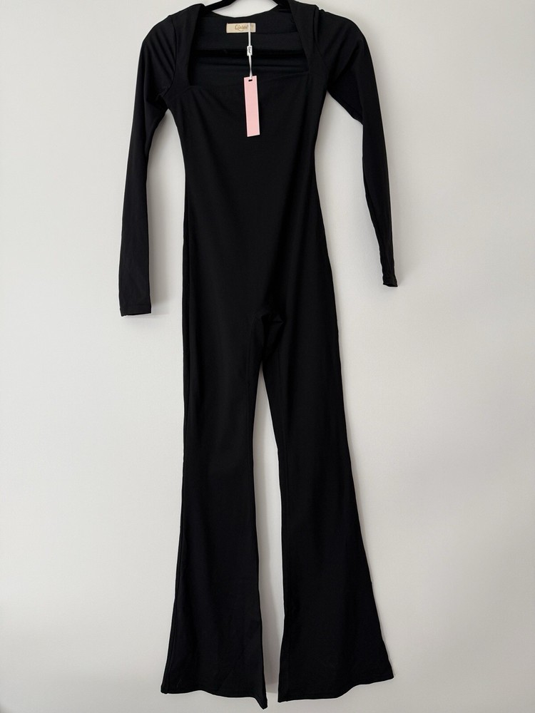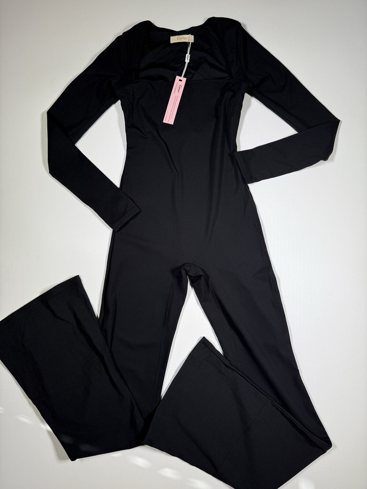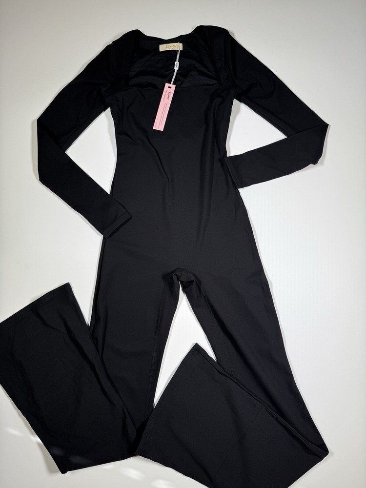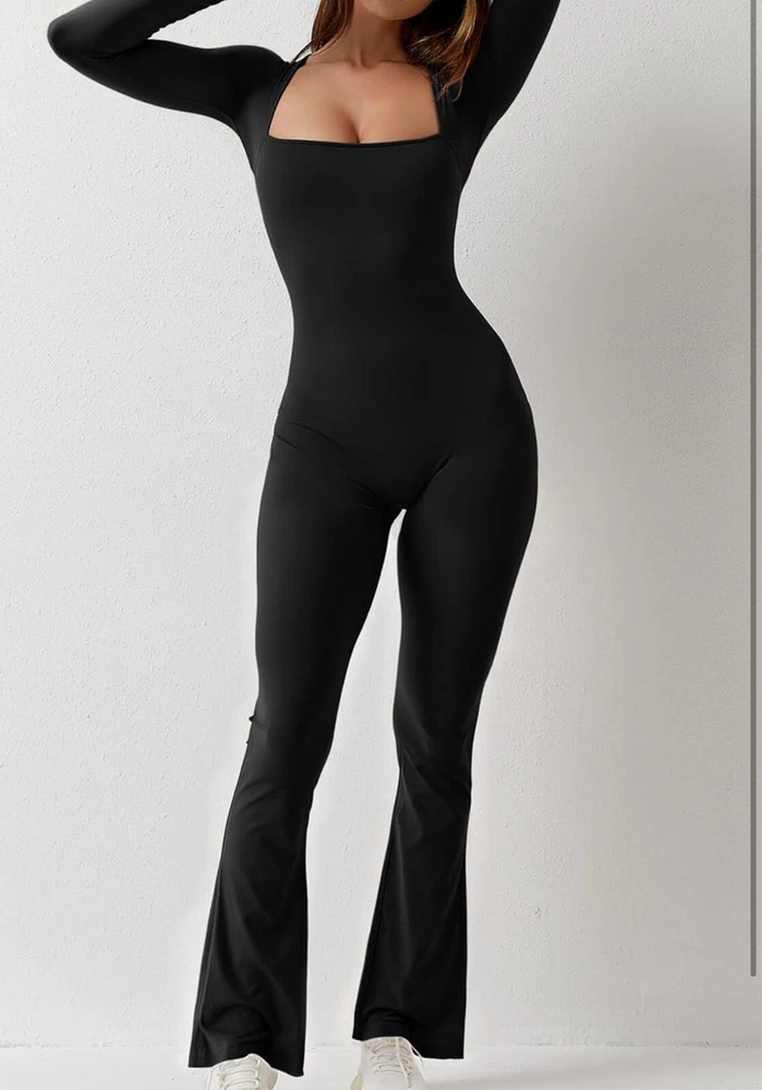 Size: M Color: Black Style: Romper Inseam: 30 in Closure: Pull On Size Type: Regular Type: One-Piece Department: Women Neckline: Square Neck Set Includes: Leggings Season: Fall, Spring, Summer, Winter Fit: Athletic Leg Style: Wide-Leg Material: 78% Nylon 22% Spandex Sleeve Length: Long Sleeve Number of Pieces: 1 Piece Brand: For Women