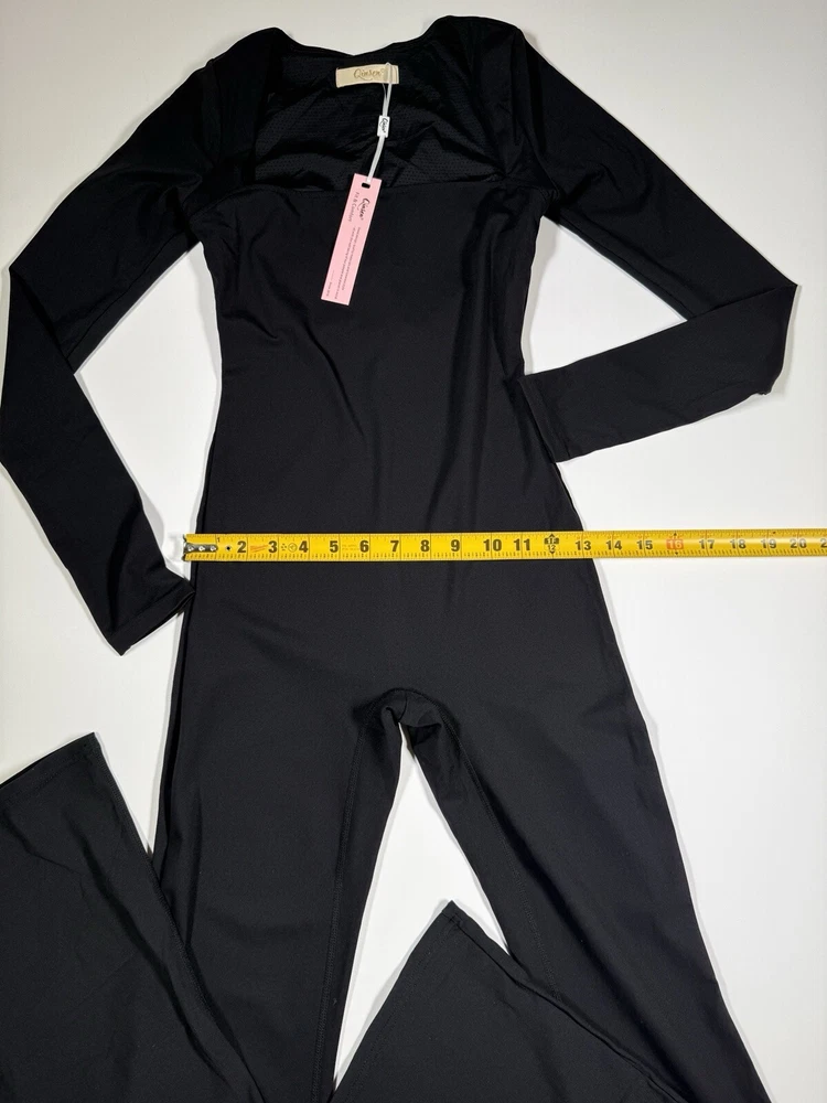 Step into style with this stunning QINSEN Jumpsuit for Women. The romantic black color, square neckline, and wide-leg design make it a must-have for any fashion-forward woman. Made from 78% Nylon and 22% Spandex, this one-piece is both comfortable and athletic, perfect for any season. Featuring a pull-on closure and long sleeves, this romper is easy to wear and versatile. The leggings set includes ensures a flattering fit, while the 30-inch inseam adds a touch of elegance. Whether you're dressing up or down, this jumpsuit is perfect for any occasion. Add it to your wardrobe today!