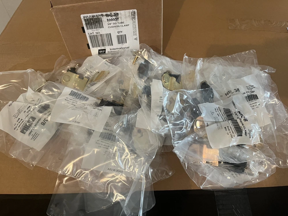 You are bidding on a new box of 25 IRP NIC-3/8 Strut Mount Cushion Clamp, 3/8" OD Tube, Electro Galvanized Gold. FREE FAST SHIPPING. We guarantee to ship within one business day of payment, please refer to our feedback and see the comments of how fast we ship. Thank you for considering our auction. We are a lost and unclaimed freight liquidator. We purchase items at lower than normal pricing and pass the savings on to you. Please consider all items except for items that must ship LTL freight are free shipping. If you are making an offer please consider what it will cost me to ship and pay ebay fees as I will simply decline anything outrageous. All items listed are in stock and the pictures provided are of the exact item for sale. RETURN POLICY. You can return anything for up to 30 days after you receive it UNLESS MARKED AS IS, then all sales are final. We sell all types of merchandise many items I either do not have the expertise to test fully or do not have the tools to do so, please consider this when opening returns. PLEASE EMAIL IF YOU WISH TO RETURN OR HAVE ANY PROBLEMS We do our best. Please contact me first and let me fix the problem. I will always bend over backwards to make sure you are satisfied with the transaction. PLEASE CONSIDER THE PICTURES OF THE AUCTION CAREFULLY. WHAT IS IN THE PICTURES IS WHAT WILL BE RECEIVED, THIS MEANS IF THE ITEM USES CUSTOM SOFTWARE OR CABLES NORMALLY SHIPPED WITH THE PRODUCT AND THEY ARE NOT SHOWN IN THE PICTURES YOU ARE NOT BUYING THEM, YOU WILL NOT RECEIVE THEM AND WE HAVE NO BETTER WAY TO GET THEM THAN YOU. We try our best to describe the item as specifically as possible but we deal with many different items and we may not know exactly what to look for or exactly what should be included. Please ask us all questions and concerns by phone or email. Thanks again for considering our auction. We strive to maintain our 100% feedback rating. Warehouse Location: 11385 60c