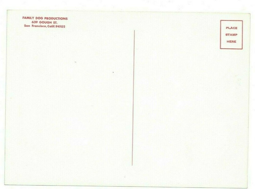 FAMILY DOG AVALON BALLROOM A RARE Rock & Roll Item! VINTAGE 1967 POSTCARD Condition: ORIGINAL, NOS(NEW OLD STOCK) HIDDEN FOR DECADES! READY FOR YOUR ROCK COLLECTION! Size: Approximately 5 x 7 Inches Will come Securely Packaged $3.95 1st Class Shipping in the U.S. $13.95 1st Class Shipping to Canada $14.95 1st Class Worldwide Shipping **NO EXTRA SHIPPING FOR OTHER POSTCARDS We have other Rock Items up, please check them out! Thanks for looking, GPHWHEELS