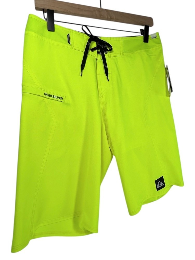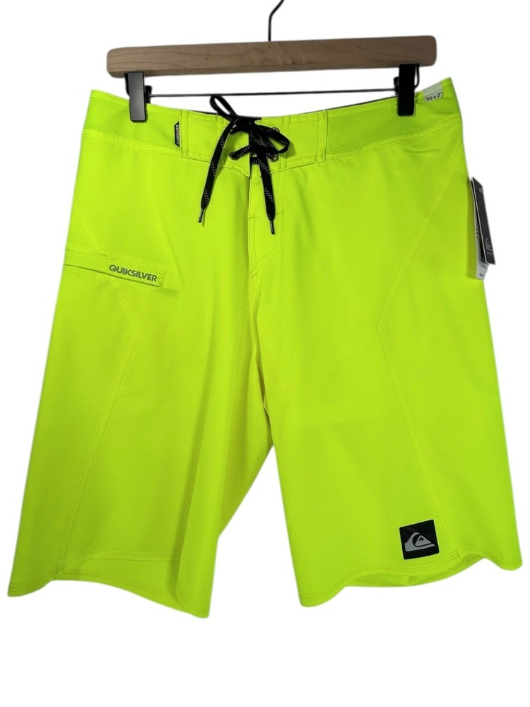 NWT Quiksilver Everyday Kaimana Neon Yellow Boardshorts • Adjustable waist front tie • Lightweight and breathable softshell fabric • Black/silver Quiksilver reflective logo on left pant leg • Rear pocket with angled zip closure • Reflective logo near pocket • Lightweight mesh lining sits above mid thigh Made with recycled polyester/elastane/spandex Made in Indonesia Waist: 30” Inseam: 9.5” Waist to hem: 21” #volcom#volcommens#volcomboardshorts#volcomswimwear#volcomswim#neonyellow#boardshorts#mensswim#neonboardshorts