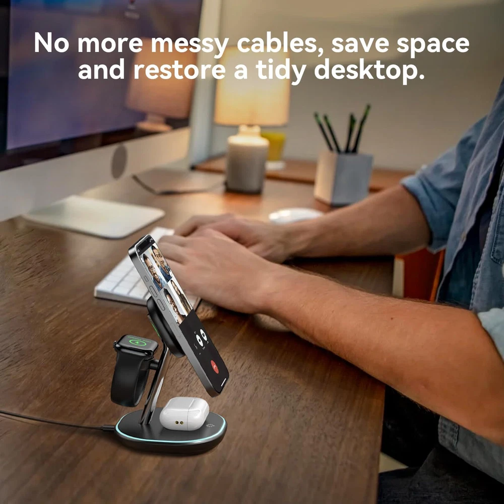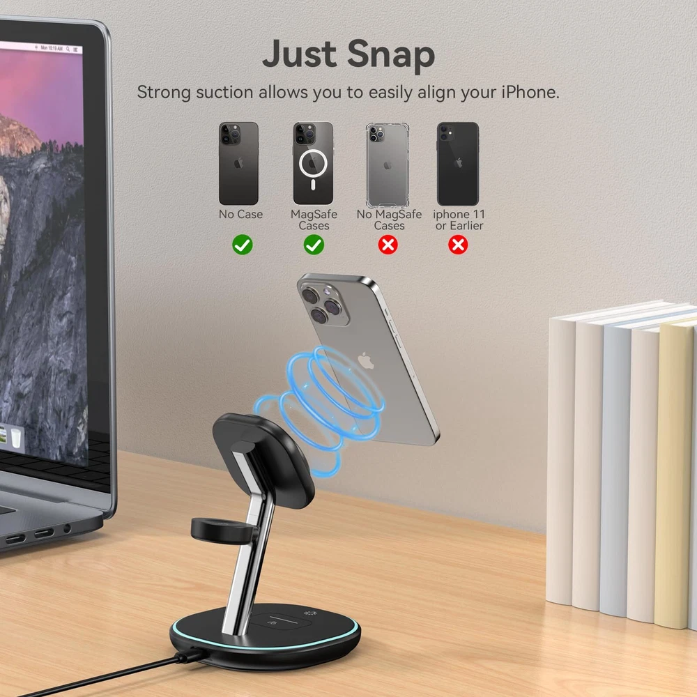 Qi2 3 in 1 Wireless Charging Station, Certified 15W Fast Wireless Charger for iPhone 16/15/15 Pro/14/13/12, Apple Watch, AirPods, Magnetic Charger for iPhone with Sleep Friendly Light (Black, Qi2) Product information Package Dimensions 6.89 x 5.31 x 5.24 inches Item Weight 13.1 ounces Item model number WHF-US00036-FT Date First Available August 22, 2024 Manufacturer Shenzhen Aodehong Electronic Technology Co.,Ltd. Country of Origin China 【15W Ultra Fast Charging】Backed by Qi2 certification, Enjoy authentic 15W fast wireless charging, providing you safer and more reliable charging at faster speed. The 3 in 1 charging station delivers 15W max fast charging for iPhone, 5W max fast charging for AirPods, 2.5W max fast charging for iWatch.[Comes with 30W adapter and 3.3 ft USB C-C Cable] 【Qi2 Certificated by WPC】Qi2 certificated by Wireless Power Consortium ensures our wireless charger the fastest charging efficiency and most stable charging performance in the market, which is a noticeable improvement compares to other regular chargers. Perfectly compatible with the charging protocols of all Apple devices, no more worries about the problems of incompatibility or charging efficiency of Apple devices. 【3 in 1 Multi-Device Charging Stand】Thanks to the precise spacing, you can charge iPhone, Apple Watch, Airpods with this 3 in 1 charging station apple simultaneously. 1,000 G powerful magnetic holding force keeps your phone securely in place. With sleek and compact design, the wireless charger won't take up much space, perfect for office or home to save on wire clutter. Simply place your devices on the wireless charging station, enjoy fast and stable wireless charging experience. 【Multi-protection and Safe Charging】 This apple charging station is built in an intelligent protection algorithm, and provides foreign object detection, radiation shielding, overcurrent protection, overvoltage protection for safer charging while maintaining efficient heat dissipation, safeguarding your Apple devices while charging. 【 iPhone Charging Stand with Sleep Light】The circular LED light on the base is designed for creating a friendly sleeping environment for you, 2 modes optional, The indicator lights up so you can see your surroundings clearly without glare,Or you can touch to turn off the light 【What You Get】: Energycell Qi2 3 in 1 Wireless Charging Station, 30W Fast adapter, 1m USB-C to USB-C Cable, Product Manual, 24-month Warranty, And timely answers to questions within 24 hours Shipping We offer FREE shipping on all orders! We ship within Three business days of payment, usually sooner. We use a selection of shipping services such as UPS, FedEx, USPS etc. We only ship to the lower 48 states, no APO/FPO addresses or PO Boxes allowed. Local pickups and combined shipping options are not provided at this time. Return You can return a product for up to 30 days from the date you purchased it. Any product you return must be in the same condition you received it and in the original packaging. Please keep the receipt. Payment We accept payment by any of the following methods: PayPal Please pay as soon as possible after winning an auction, as that will allow us to post your item to you sooner! Feedback Customer satisfaction is very important to us. If you have any problem with your order, please contact us and we will do our best to make you satisfied. Contact Us If you have any queries, please contact us via ebay. We usually respond within 24 hours on weekdays. Please visit our eBay store to check out other items for sale! Thank you for shopping at our store.