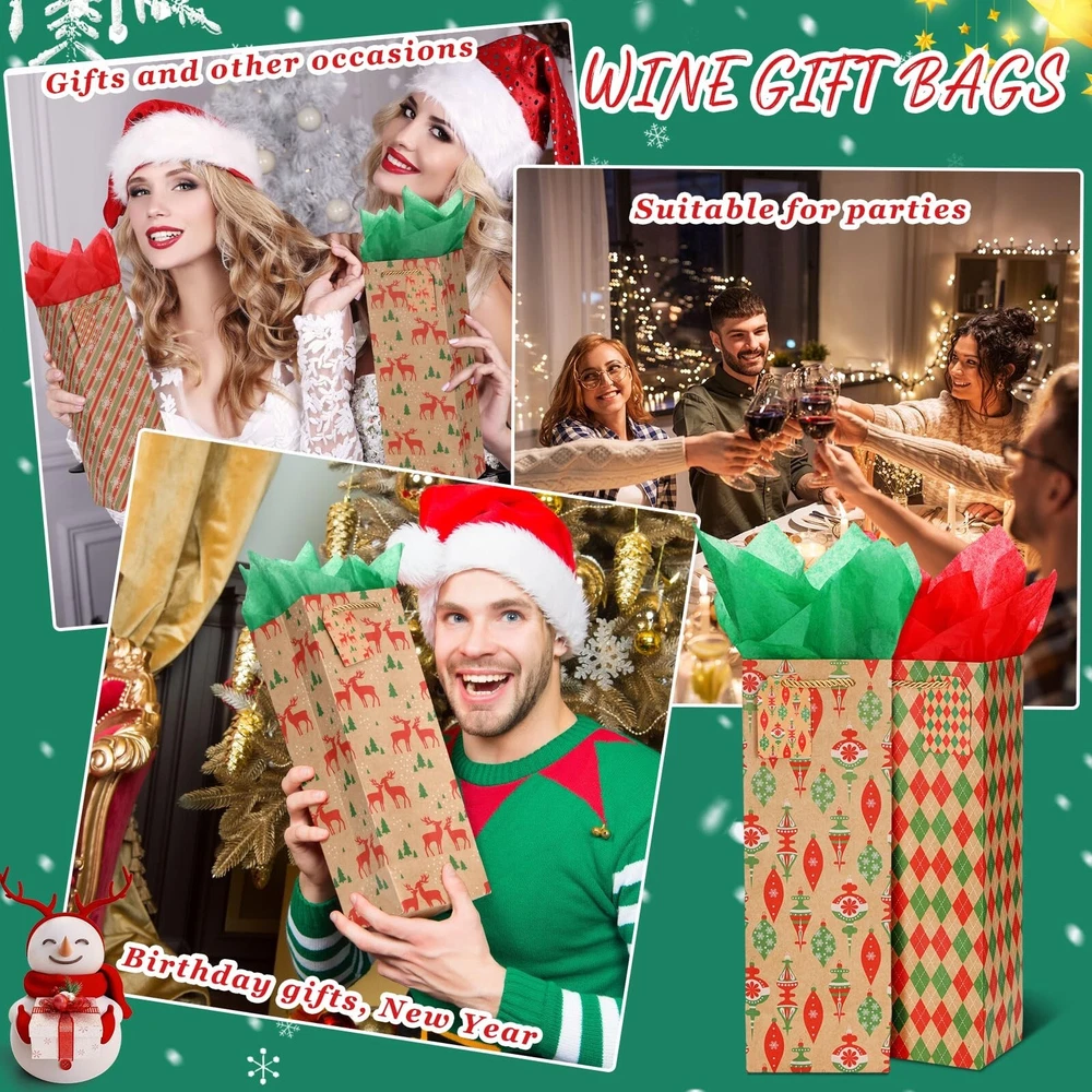 Qilery 60 Pieces Christmas Wine Bottle Gift Bags with Handle Christmas Kraft ...