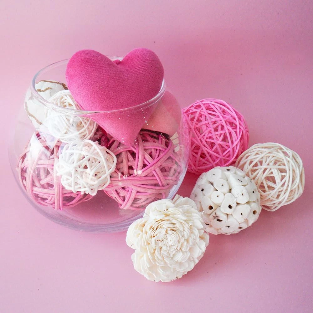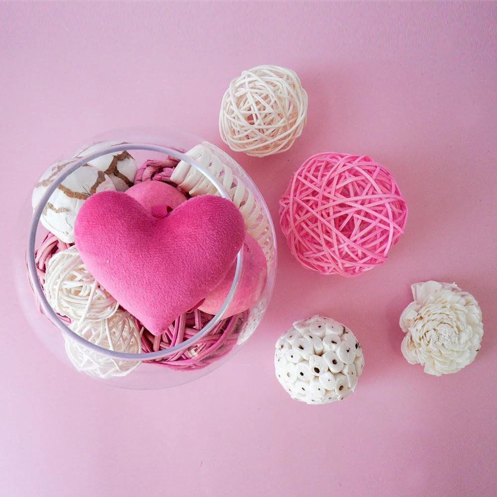 Qingbei Rina Valentine's Day Decorative Balls for Bowls,Assorted Vase Heart Product Details Color: Heart Brand: Qingbei Rina Theme: Heart Material: Rattan Style: Farmhouse Occasion: Valentines Day Product Dimensions: 6.81"D x 5.79"W x 6.42"H Recommended Uses For Product: Home Mounting Type: Tabletop Special Feature: Handmade Seasons: Spring Number of Items: 1 Item Weight: 7 ounces Manufacturer: Qingbei Rina Item model number: decorative balls Valentine's Day Decorative Balls: Qingbei Rina's pink decorative balls are made of high quality rattan balls and some distinctive fake flowers and knotted balls, pink and white fake flowers and balls for you to decorate a pure and romantic Valentine's Day. Decorate the space for you and your loved one's sincere emotions. High-end Quality Decorative Rattan Balls: The spring decorative balls are made by natural and sturdy material, healthy and environmental. These pink rattan balls are handmade, elegant and classic. With the experienced weaving technology, the assorted decorative balls will not unravel and fade, which are favorable for baby and pets. Decorative Balls for Centerpiece: The decorative orbs are popular to be used on bowl fillers for home decor on table centerpiece. It is also perfect as small lampshades, hanging balls for summer fall wedding bathroom bedroom holiday, party, living room kitchen decors. Also suitable to make the DIY craft with potpourri, nuts, essential oil diffusers, scented candles etc. Wide Application: A variety of orbs decorative balls are the perfect craft supplies set for your decorating ideas or any crafting project. Pink tones are perfect for the spring and summer ornament which will increase the party and holiday element in your home. Also can be used on Valentine's Day, St. Patrick's Day, Mother's Day and other special days. Good Service: Our pink decor balls are not only suitable for self use, but also as great gifts for your family and friends. Our shop focuses on potpourri dried flowers, also provides a variety of home decor products for buyers.
