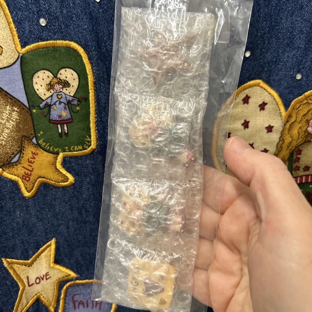 Quacker Factory Jean Vest Jacket M Angel Denim Button Sleeveless Christmas NWOT