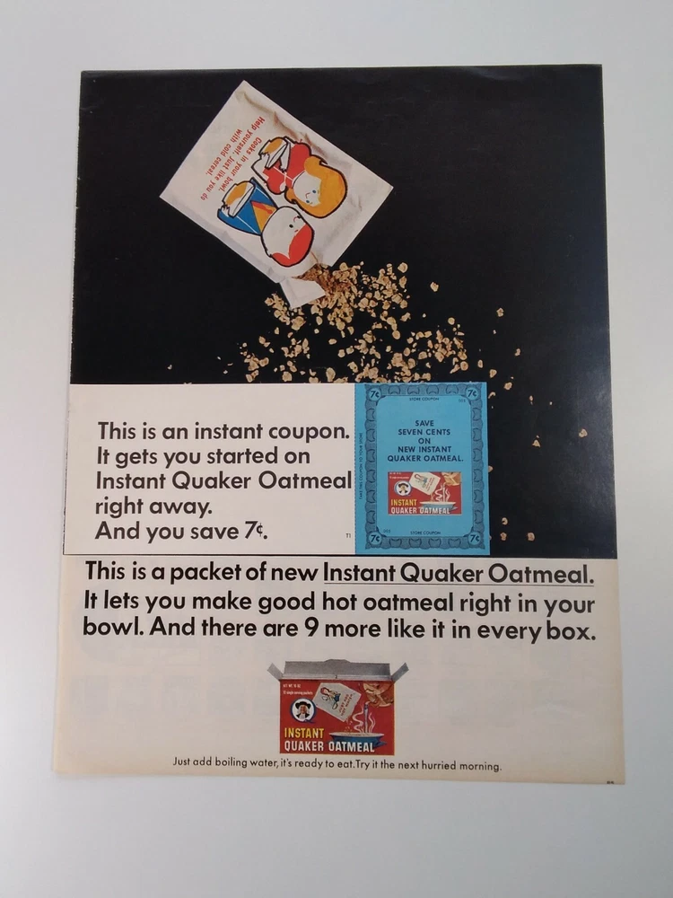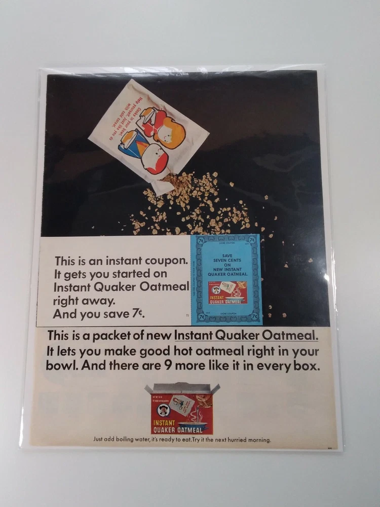 Quaker Oatmeal Print Ad Original Vtg 1966 Coupon Hit Albums Capital Records