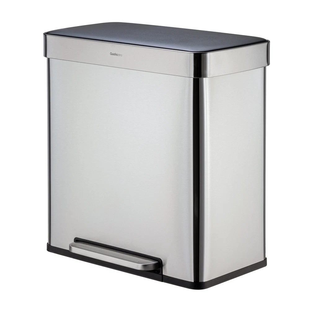 Our Qualiazero 16 Gallon Dual Compartment Step On Trash & Recycling Can includes two removable, leak-proof inner buckets - black for trash and blue for recyclables! Our activated carbon filter deodorizer absorbs unpleasant odor and keeps your kitchen smelling fresh! Its large capacity is perfect for any size family and each compartment is compatible with any standard 10-gallon trash bag. Great for the kitchen or any high-traffic areas. The sturdy foot pedal controls the lid smoothly and keeps your hands free. Upon release of the foot pedal, the lid closes softly and silently without slamming shut. Crafted from commercial-grade stainless steel, our step can is built to withstand everyday consistent use and is smudge resistant - meaning it will stay clean longer! The two inner bins slide smoothly in and out of the trash can for easy trash and recyclable removal and convenient bag changes with no mess. For regular cleaning, use a damp microfiber cloth to effortlessly wipe clean! Ideal for kitchens. Dual Compartment Design: Includes two removable, leak-proof inner buckets—black for trash and blue for recyclables—for easy sorting. Activated Carbon Filter Deodorizer: Absorbs unpleasant odors to keep your kitchen smelling fresh. Large Capacity: Total of 16 gallons, perfect for any family size. Each compartment fits standard 10-gallon trash bags. Hands-Free Operation: Sturdy foot pedal allows smooth lid control, keeping your hands free and hygienic. Soft-Close Lid: Lid closes softly and silently without slamming after releasing the foot pedal. Durable Construction: Made from commercial-grade stainless steel to withstand daily use. Smudge-Resistant Finish: Resists fingerprints and smudges, keeping the can looking clean longer. Easy Maintenance: Inner bins slide in and out smoothly for effortless trash and recycling removal. Simple Cleaning: Easily wiped clean with a damp microfiber cloth. Versatile Placement: Ideal for kitchens and high-traffic areas. On Feb 18, 2025 at 21:25:25 PST, seller added the following information: