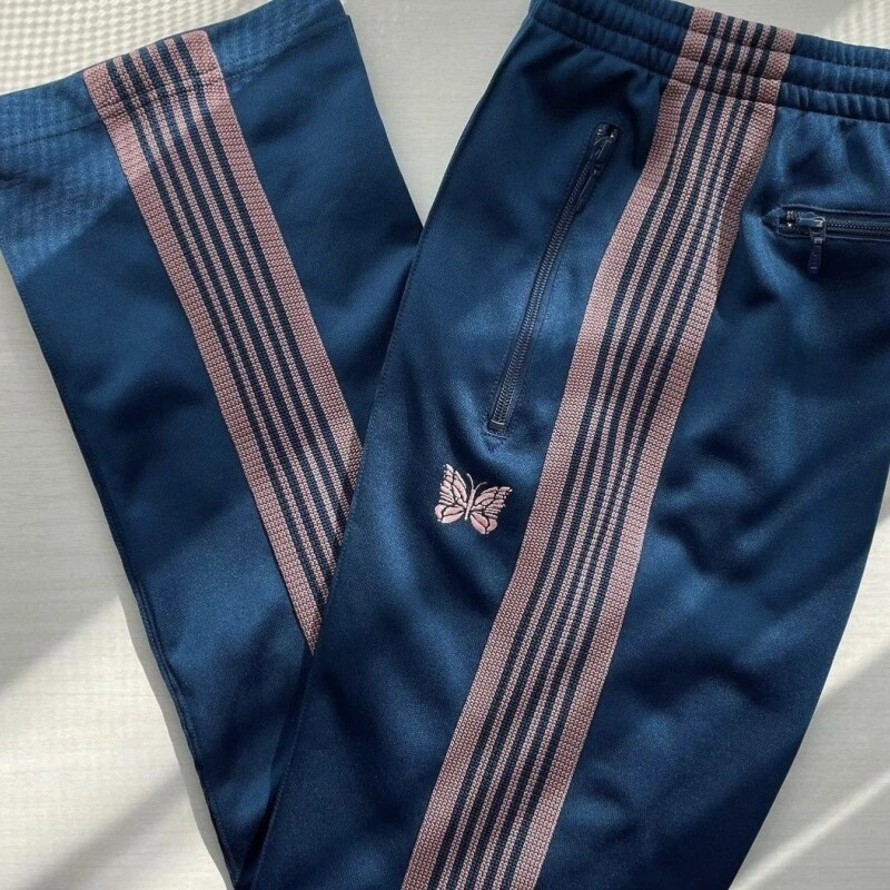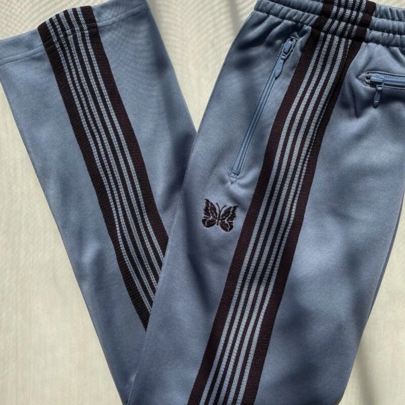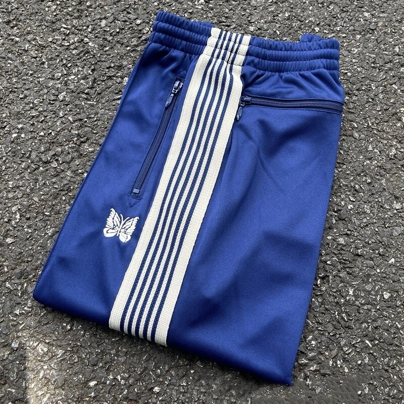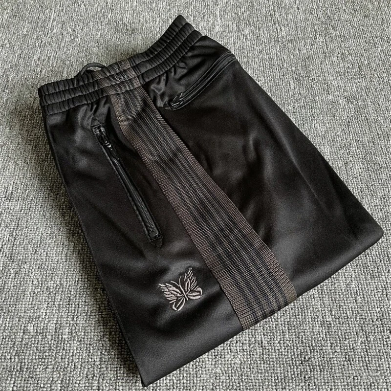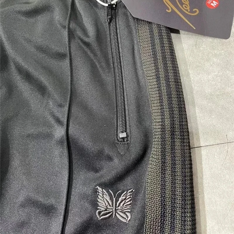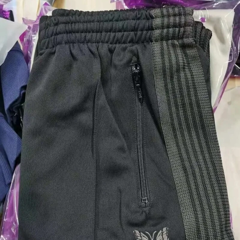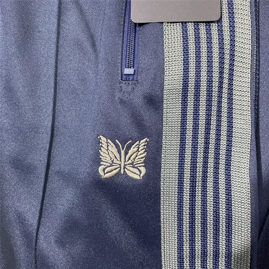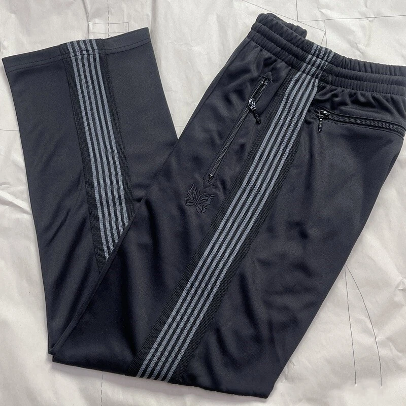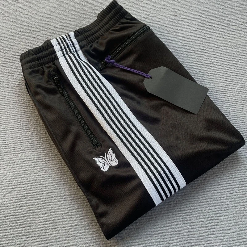 Quality Embroidered Needles Track Pants Classic Stripe Trousers