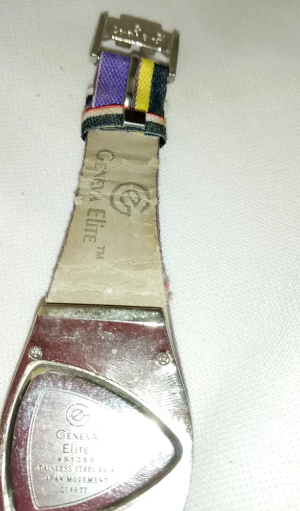 Geneva Quartz Watch Elite 91368 Stripe Band Purple Dial Women's 7" See Other Jewelry, Clothes, Accessories, And Collectibles Inside This Store. Thank You For Shopping. Please Visit Again Soon.