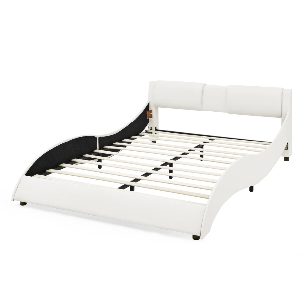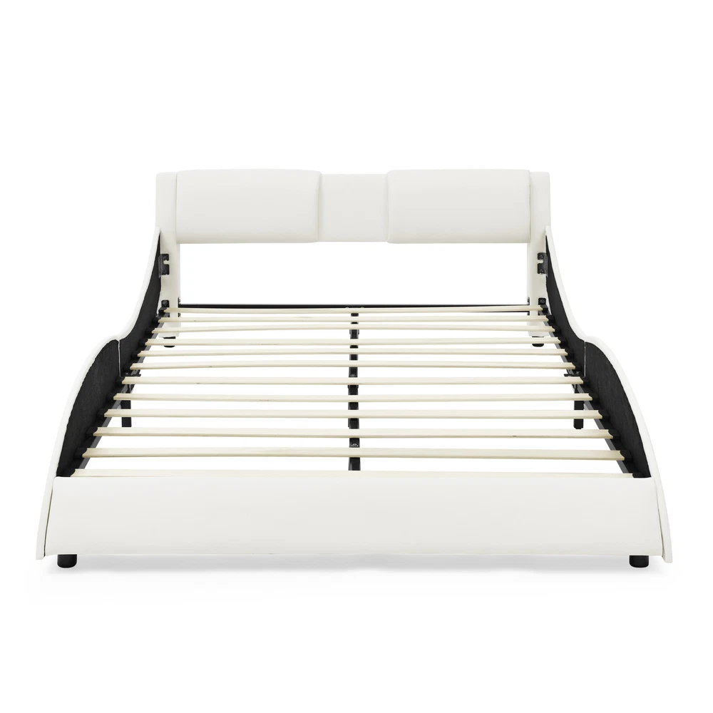 Queen Bed Frame Modern Faux Leather Upholstered Platform Bed Frame with and Head