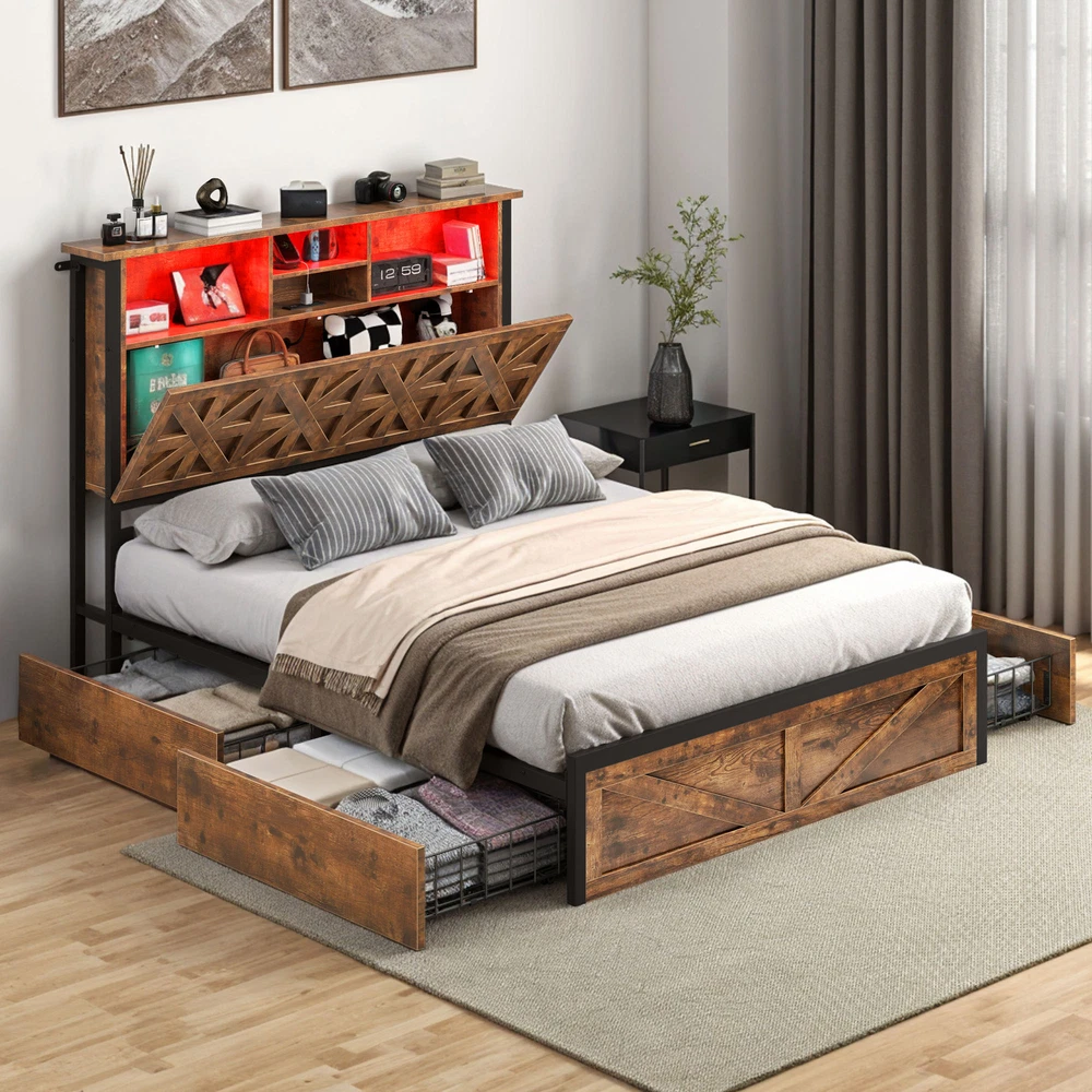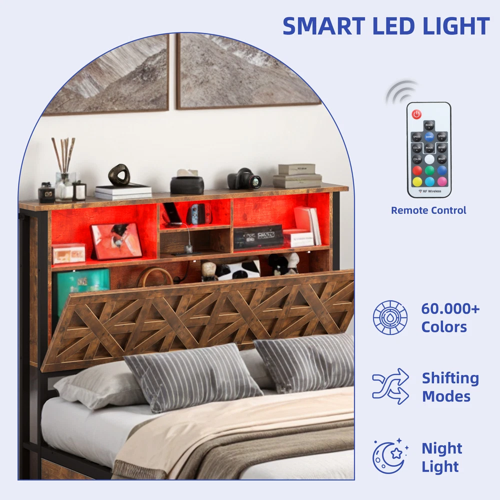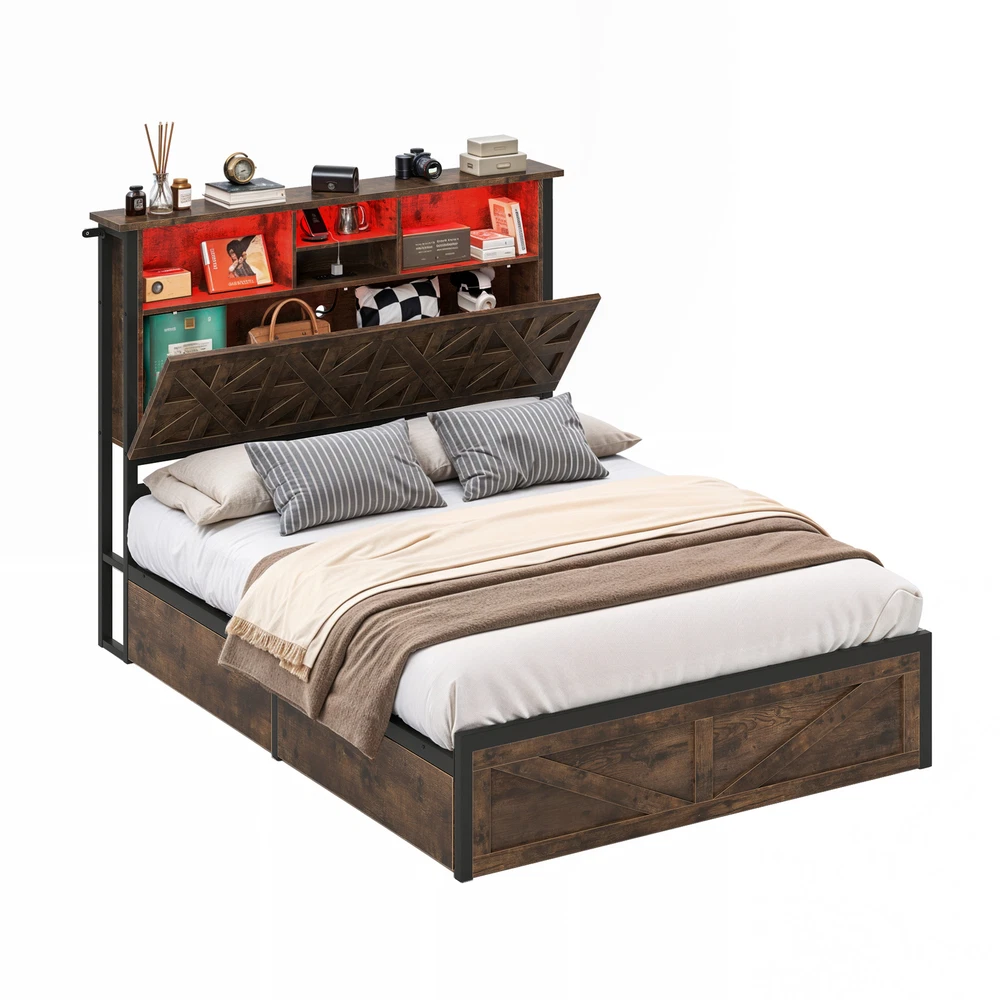 Queen Bed Frame w/ Hidden Storage & Underbed Drawers & LED Lights 86"x60" Product Description NOTE: Professional Installation would be Highly Recommended. Description: 1. Material: Metal Aluminum 2. Color: Brown 3. Features: Underbed Storage, LED Light w/ Remote Control, Sturdy Leg 4. Warranty: 1 Year 5. Room Type: Bedroom, Guest Room Features: 1. Concealed Headboard Storage: The headboard features a discreet storage compartment, perfect for stashing books, devices, or personal items. This clever design keeps your bedroom organized while ensuring essentials are within easy reach. 2. Comprehensive Charging Access: Equipped with USB and Type-C ports alongside dual power sockets, this bed frame simplifies device charging. Enjoy the convenience of powering your gadgets from the comfort of your bed, minimizing cable clutter. 3. Dynamic LED Lighting Options: The integrated LED lights offer a spectrum of seven colors and multiple modes, easily controlled via remote. Customize your lighting to suit your mood, whether you desire a calming ambiance or a lively atmosphere. 4. Robust and Silent Build: Constructed from durable metal aluminum, this bed frame offers exceptional stability and support. Its noise-free design ensures a peaceful sleeping environment, free from disruptive creaks and sounds. 5. Effortless Assembly: Designed for quick and easy setup, the bed frame comes with clearly labeled parts and detailed instructions. Spend less time assembling and more time enjoying the sleek, modern design of your new bed. Dimensions: 1. Overall Size: 86,8" x 60" x 51,4" Package Included: 1. Sets Bed Frame 2. Assembling Hardware Kits 3. Instruction Manual Book Shipping 1. Normally the item will be dipatched within 1 business day if payment is cleared before 12pm PST. 2. Please verify the correct shipping address in your PayPal account before making the payment. We only dispatch the item to the address that is sent to us at the time of checkout. 3. We don't ship to Hawaii, Alaska, Puerto Rico, APO/FPO/PO Boxes. 4. We don't provide local pick-up service. 5. Normally we will use USPS, UPS, FedEx & LTL to dispatch items. Payment 1. We accept PayPal and credit card. 2. We will ship to the confirmed Paypal shipping address that is provided with the payment only. Return 1. 30 days Money Back Guarantee. 2. Please contact our customer service to receive a RMA form first if want to return the item. 3. All returned items MUST in new condition with the original package. Contact If has any problem, please contact us by sending an ebay message. Our customer service will resolve the problem as soon as possible. On Feb 11, 2025 at 03:08:21 PST, seller added the following information: