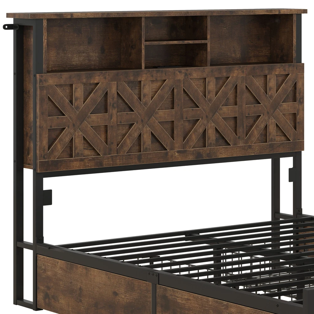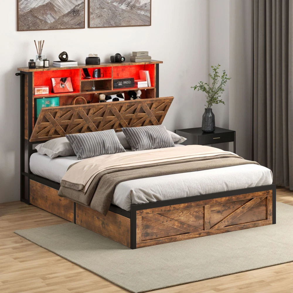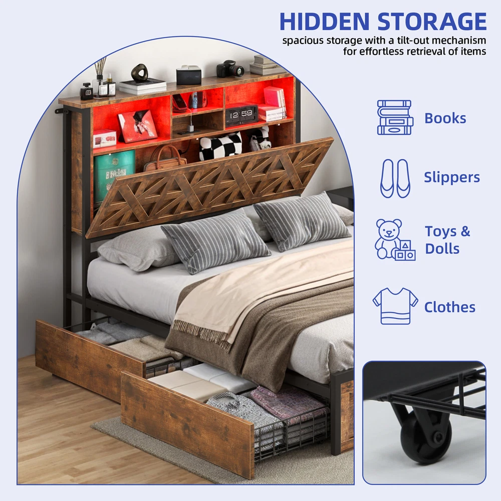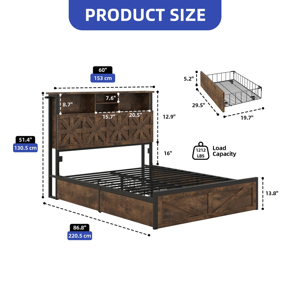 Queen Bed Frame w/ Hidden Storage & Underbed Drawers & LED Lights 86"x60" Product Description NOTE: Professional Installation would be Highly Recommended. Description: 1. Material: Metal Aluminum 2. Color: Brown 3. Features: Underbed Storage, LED Light w/ Remote Control, Sturdy Leg 4. Warranty: 1 Year 5. Room Type: Bedroom, Guest Room Features: 1. Concealed Headboard Storage: The headboard features a discreet storage compartment, perfect for stashing books, devices, or personal items. This clever design keeps your bedroom organized while ensuring essentials are within easy reach. 2. Comprehensive Charging Access: Equipped with USB and Type-C ports alongside dual power sockets, this bed frame simplifies device charging. Enjoy the convenience of powering your gadgets from the comfort of your bed, minimizing cable clutter. 3. Dynamic LED Lighting Options: The integrated LED lights offer a spectrum of seven colors and multiple modes, easily controlled via remote. Customize your lighting to suit your mood, whether you desire a calming ambiance or a lively atmosphere. 4. Robust and Silent Build: Constructed from durable metal aluminum, this bed frame offers exceptional stability and support. Its noise-free design ensures a peaceful sleeping environment, free from disruptive creaks and sounds. 5. Effortless Assembly: Designed for quick and easy setup, the bed frame comes with clearly labeled parts and detailed instructions. Spend less time assembling and more time enjoying the sleek, modern design of your new bed. Dimensions: 1. Overall Size: 86,8" x 60" x 51,4" Package Included: 1. Sets Bed Frame 2. Assembling Hardware Kits 3. Instruction Manual Book Shipping 1. Normally the item will be dipatched within 1 business day if payment is cleared before 12pm PST. 2. Please verify the correct shipping address in your PayPal account before making the payment. We only dispatch the item to the address that is sent to us at the time of checkout. 3. We don't ship to Hawaii, Alaska, Puerto Rico, APO/FPO/PO Boxes. 4. We don't provide local pick-up service. 5. Normally we will use USPS, UPS, FedEx & LTL to dispatch items. Payment 1. We accept PayPal and credit card. 2. We will ship to the confirmed Paypal shipping address that is provided with the payment only. Return 1. 30 days Money Back Guarantee. 2. Please contact our customer service to receive a RMA form first if want to return the item. 3. All returned items MUST in new condition with the original package. Contact If has any problem, please contact us by sending an ebay message. Our customer service will resolve the problem as soon as possible. On Feb 11, 2025 at 03:08:21 PST, seller added the following information: