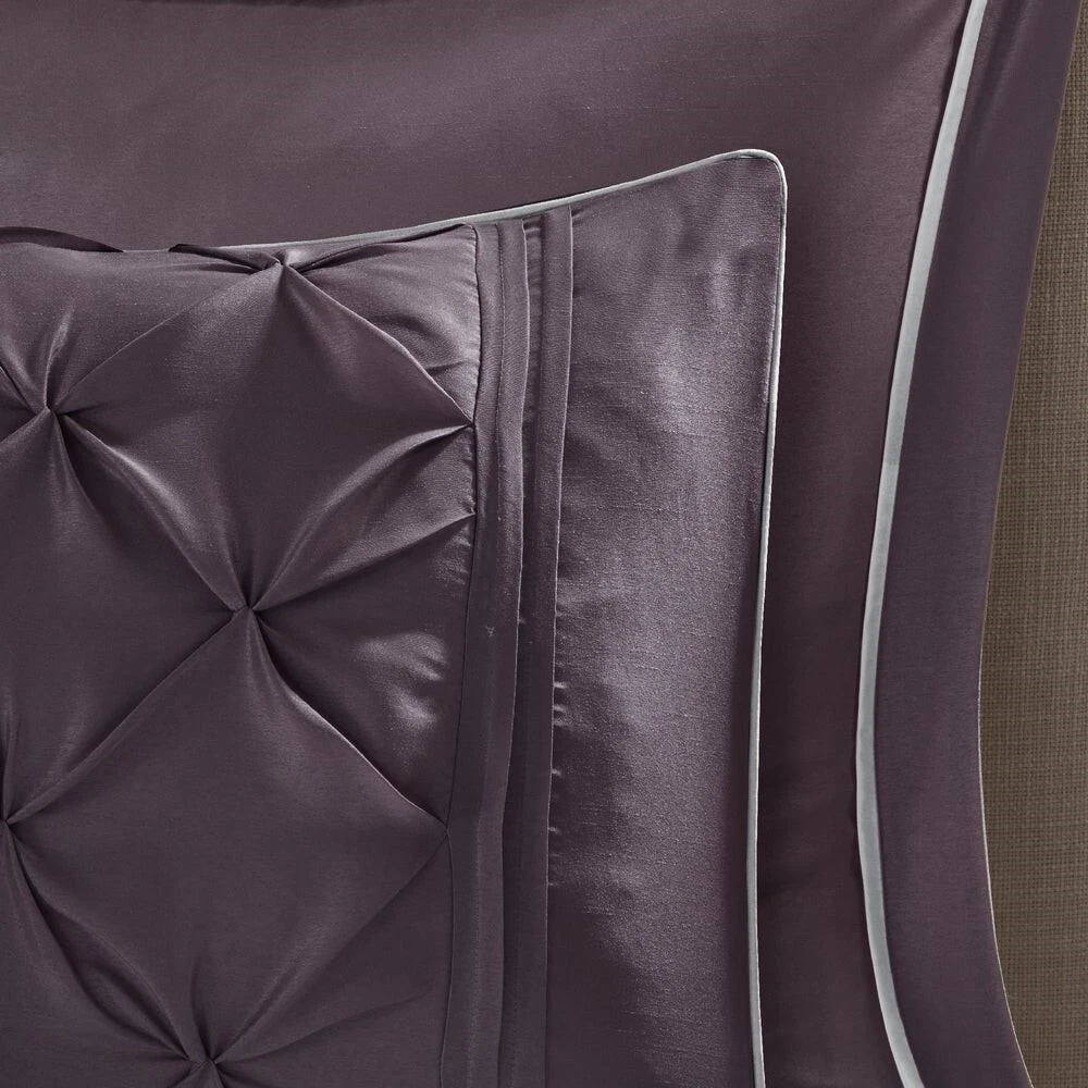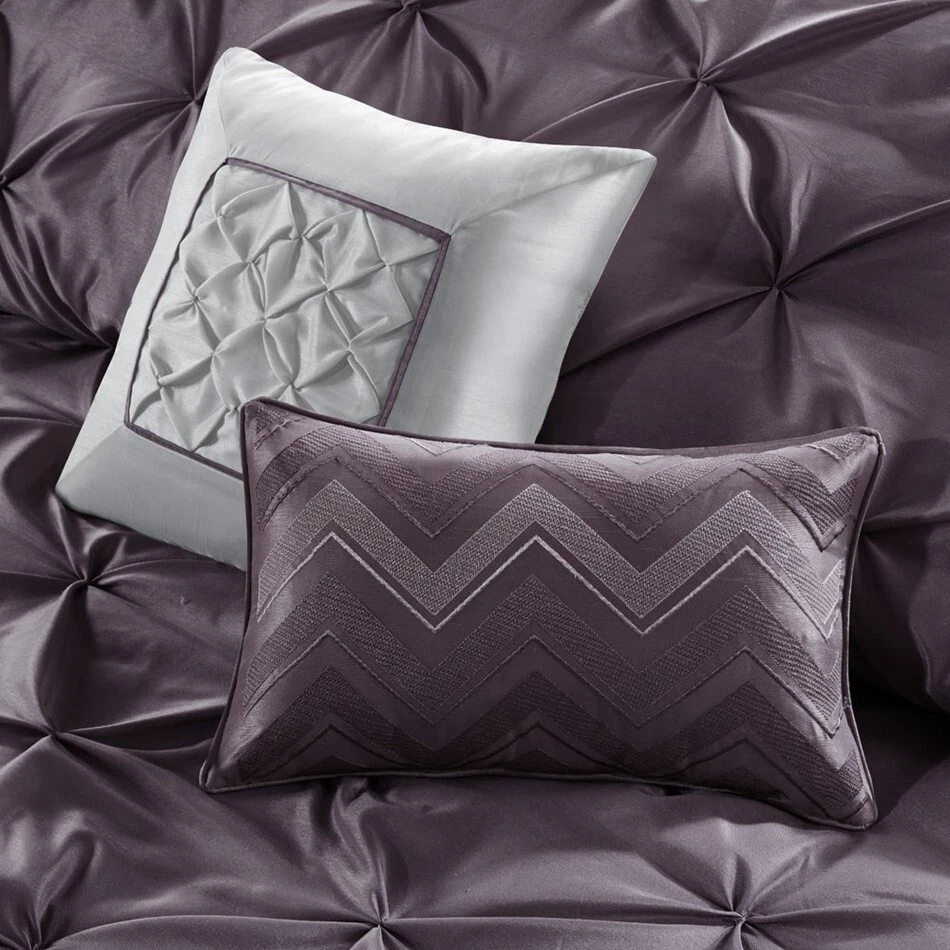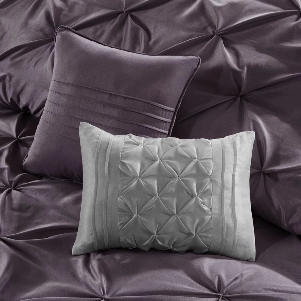 Create a complete, sophisticated look in your bedroom with this stylish room in a bag set. The 24-piece set is crafted from faux silk, with everything you need to make up your bed and windows. The plum-colored fabric, embroidered accents, and pinch pleat detailing give the pieces a royal elegance that will transform the look of your room. Features: 24-piece room in a bag Faux silk polyester Tufted with border frame Embroidery, pleating, and tufted details Fitted sheet fits up to 16-inch mattress pocket depth Machine washable comforter, window curtain, sheet set Spot clean on the decorative pillows Set Includes: 1 comforter 1 bedskirt with 15-inch drop 2 shams 2 euro shams 4 decorative pillows 4 curtain panels with 4 tie backs 2 valances 1 flat sheet 1 fitted sheet 2 pillowcases Queen Dimensions: Comforter: 90 inches wide x 90 inches long Shams: 20 inches wide x 26 inches long Bedskirt: 60 inches wide x 80 inches long with 15 inches drop length Flat Sheet: 90 inches wide x 102 inches long Fitted Sheet: 60 inches wide x 80 inches long with 14 pocket depth Pillowcases: 20 inches wide x 30 inches long 4 Window Panels 42 inches wide x 84 inches long(4) 4 Tie Backs 4 inches wide x 23 inches long (4) 2 Valances 54 inches wide x 18 inches long (2) ⮟ Links to related items ⮟ click for details click for details click for details click for details click for details click for details click for details click for details click for details click for details click for details click for details click for details click for details click for details click for details click for details click for details click for details click for details click for details click for details click for details click for details click for details click for details click for details click for details click for details click for details click for details click for details click for details click for details click for details click for details click for details click for details click for details click for details ↪ See more of our listings ↩ ↠ FREE SHIPPING ON ALL ORDERS ↞ If you have any questions regarding your order, please contact us How will I know when my order has been shipped? As soon as tracking for your shipment is available, your should receive an email. As well, your order detail page will be updated to reflect this information. Once my order has been shipped when will I receive it? All items should ship within 3 business days of purchase. The shipping time once in transit varies from item to item. Please refer to the shipping type and estimated delivery date at the top of this listing. Do you deliver on public holidays or weekends? Holidays and Sundays are not considered working days, so we don't include these in our estimated delivery times. In this instance you should expect delivery on the next working day following the Holiday or Sunday. What countries do you deliver to? We only ship within the Continental USA. No APO or FPO addresses are accepted. We do not ship to Alaska or Hawaii. What do I do if I have not received my order? If your order does not arrive within 14 days please contact us so that we can investigate with the delivery company. One of the items is missing from my order. What do I do? Sometimes items that are purchased on the same order may arrive to you on different days. Additional packages may have their own tracking number. If you received only part of your order, please contact us and we will investigate. A specific part is missing or defective for my item. What do I do? If the item has assembly instructions, please contact us with the specific part names and identifiers, exactly as they appear in the instruction. We can normally open a parts request with our warehouse to try and get the missing or defective part replaced for you. If a replacement part is not available, we can process a return of the item for a full refund or replacement. How do I return an item? To arrange a return please open a formal return request through your order detail page. This is the easiest and most efficient way to process and track the return process. I have received my item but it's damaged / faulty. What should I do? If your item arrived damaged or is faulty, we will make this right as soon as possible, either by sending a replacement item to you or processing a free return for full refund to your account. When will I receive my refund/replacement? We will process your refund / replacement as soon as your item is received back into our warehouse. Replacements are subject to availability and, if not available, a refund will be given instead. Where possible please retain the packaging that your original order arrives in as you can use it to return the items to us. Queen Bedding Set 24 Piece Room Decorative Purple Comforter Bed Sheets Curtain L
