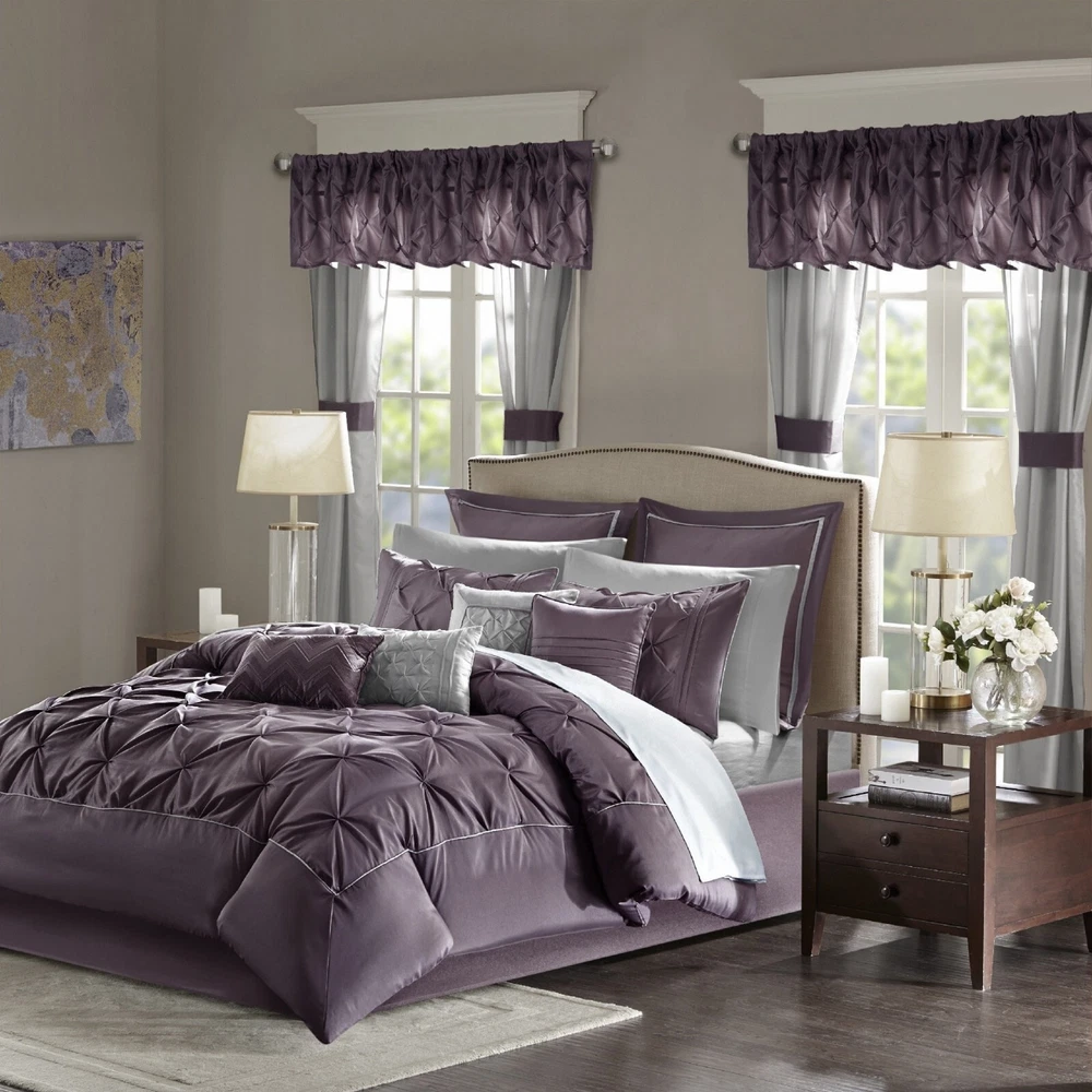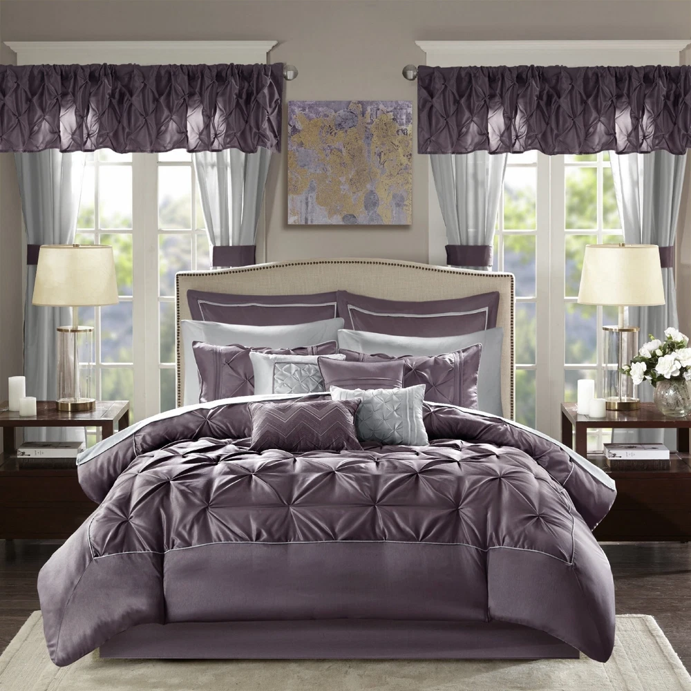 Queen Bedding Set 24 Piece Room Decorative Purple Comforter Bed Sheets Curtain L