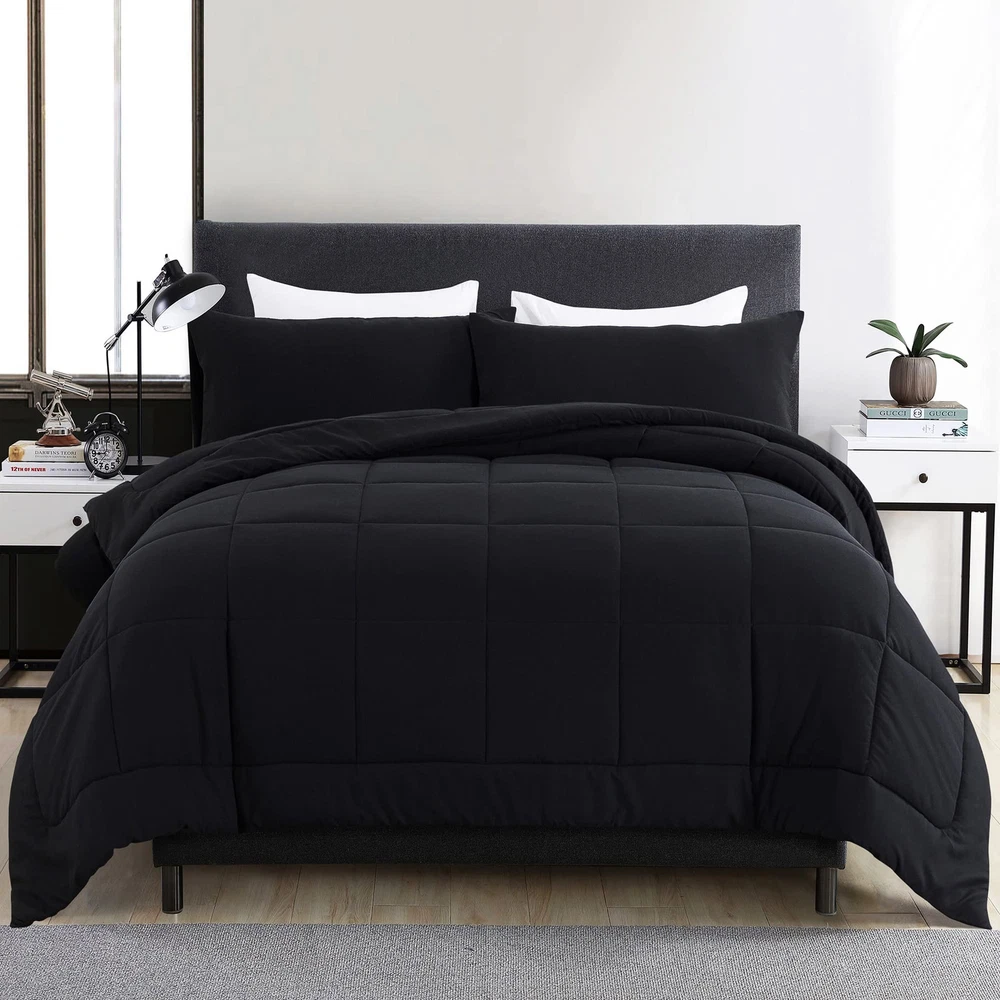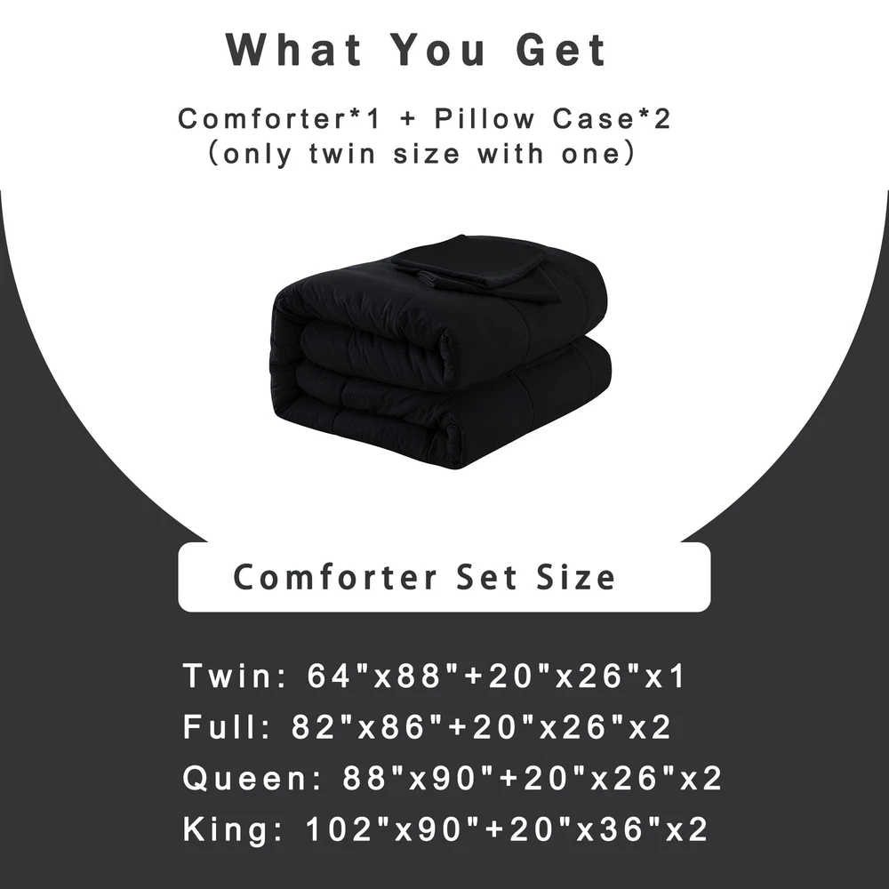 High Quality Fabric: The queen comforter set is made of premium microfiber polyester fabric, which is soft and breathable, provides you a comfortable sleep. Bedding Comforter Sets: The bedding sets queen include 1 down alternative quilted comforter(88"x90") and 2 pillowcases(20"x26"). This comforter set will give your comfortable sleep experience in All Season. Exquisite Design and Craft: Corner tabs at each side helps secure the comforter in place. Box stitching technology design helps minimize fill shifting. Checkered quilting with outline border makes the comforter more simple and fashionable. Easy to Care: Since comforter is vacuum packaged, we suggest you beat lightly, expose it to the sunlight for a few hours to completely fluff up. About washing, recommended machine wash in the gentle cycle with cold water. Satisfaction : If you have any questions, please us for help. to give you a satisfactory solution. Your satisfaction is our pleasure.