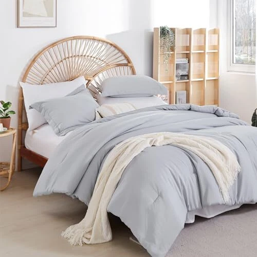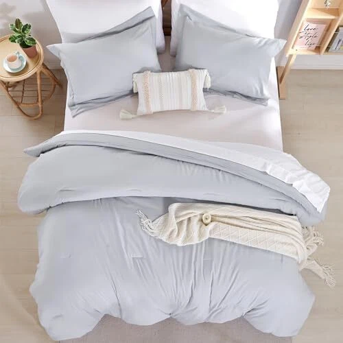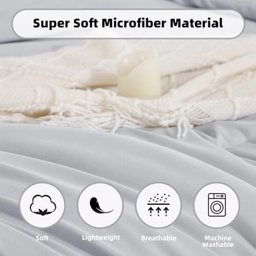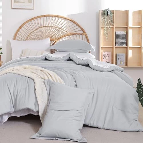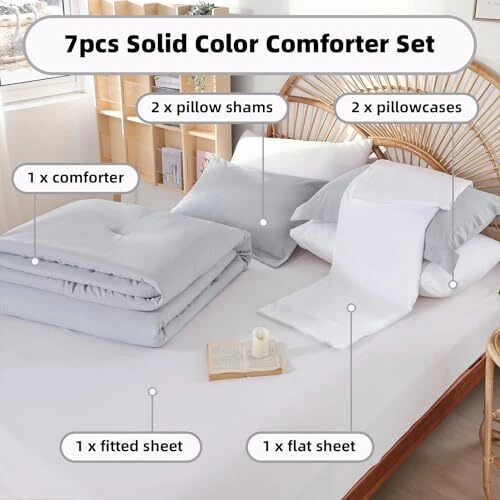 UPC: Does Not Apply Item Weight: 8.4 pounds Manufacturer: Does Not Apply Pattern: Solid MPN: Does Not Apply gtin13: Does Not Apply Number of Pieces: 7 Theme: Solid Color: Light Grey Seasons: All Fabric Type: Microfiber Material: Microfiber Date First Available: December 20, 2023 Item Length: 16.42 Style: Boho Size: Queen Product Care Instructions: Machine Wash, Dry Clean Only Type: Does Not Apply Item Width: 12.56 EAN: Does Not Apply Included Components: Pillow Shams, Pillow Cases, Comforter, Fitted Sheet, Flat Sheet Package Dimensions: 16.42 x 12.56 x 5.47 inches Item Height: 5.47 Brand: Does Not Apply