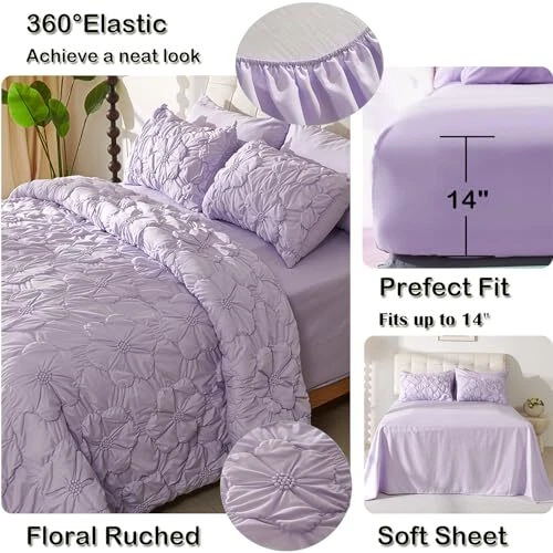 Return Policy Fast Delivery Trusted seller Purple Queen Comforter Set,7 Pieces Pintuck Comforters,Floral Ruched Bedding Set,Exquisite Bedding Comforter Set for All Season with Comforter,Flat Sheet,Fitted Sheet and Pillowcases & Shams(90"x90") Product Description Comfy As Cloud: Comforter is made of high-quality microfiber and down alternative filling, to provide plush comfort all year round. This luxurious comforter feels soft, fluffy and cozy, just be like sleeping on clouds, get the sleep you’ve been dreaming of. Elegant Design: Exquisite 3D floral ruched comforter is like blooming flowers, making your bedroom feel like a romantic garden. Lying under the comforter, as if you are in the flowers, every sweet dream of yours will be surrounded by flowers. Perfect Gifts: The ruched floral pintuck made by elastic embroidery, not only have an delicate decoration, but also keep the filling in place. Fitted sheet features a 360° elastic band and a 14 inch deep pocket, fit any mattress. Such a good bedding comforter set is a great gift to your friends and family, they will be very happy and you will get their praise. Easy Care: Machine wash cold, gentle cycle, air dry or tumble on low. No ironing required. Do not bleach. We recommend large capacity washer and dryer to avoid damages to the comforter. What You Get: 7-piece queen size bed comforter set includes everything you need, 1 Comforter(90"x90"), 1 Flat Sheet(90"x102"), 1 Fitted Sheet(60"x80"x14“), 2 Pillowcases(20"x30"), and 2 Pillow Shams(20"x26"). Shipping Returns Payment Shipping Shipping is FREE to all addresses other than APO/PO boxes in the lower 48 states. All our stock ships from US-based warehouses. Shipped via USPS or UPS (depending on location and package weight) Unless stated otherwise, all orders will ship within 24-72 hours of your payment being processed. Check our feedback to see the great reviews of FAST shipping we offer. Returns Seller does not accept returns Payment We currently accept payment via eBay managed payments only. Once payment is cleared, we will dispatch your shipment within 1-3 business days. Please refer to the "Shipping" tab for more information regarding shipping speed to your destination.