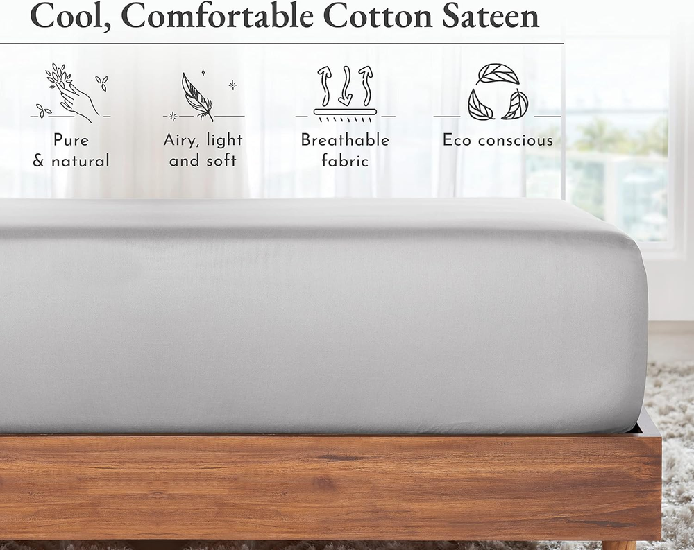Store New Arrivals Add to Favorite View Feedback Contact Queen Fitted Sheet Deep Pocket, Soft 100% Cotton Sateen, Durable All-Around Elastic, Head/Foot Side Indicators, Light Grey Fitted Sheet Queen Description Color 03 - Light Grey Pattern Solid Fabric Type 100% Cotton, Sateen Weave Material Cotton Size Queen 1 FITTED SHEET ONLY: Enjoy the soft sateen feel, lightweight design (not see-through) and great fit of our 100% cotton elastic fitted sheets for a comfortable and refreshing sleep. 14" DEEP POCKET FOR FIT: Our soft queen size fitted sheet only cotton fits mattresses 8 to 14 inches deep (60"W x 80"L) with a wide all-around elastic that won't loosen or bunch up. Head side /foot side indicators make bed-making a breeze. SOFT AND BREATHABLE: Made from 100% cotton sateen fabric, our fitted sheet has an ideal weight that enhances breathability, allowing air to circulate and providing a comfortable feel each night. Designed for year-round use. EASY TO CARE AND VERSATILE: You can machine wash and dry our fitted sheet at a normal setting, and it will come out looking great for years. Our cotton fitted sheet only is durable. Every item bearing the OEKO-TEX STANDARD 100 label is certified as having passed safety tests for harmful substances. Tested for pilling, fading, and shrinkage and softens with each wash. It's suitable for use alone or with a top sheet or duvet cover, making it a preferred choice for any bedroom. OUR COMMITMENT: We prioritize comfort, community, and sustainability. Since 2022, we've donated over 36,000 bedding items to US charities, bringing the gift of softness to those in need. Dedicated to the environment, we use no plastic in our packaging. Each sheet is crafted in our family-owned factory in India with care and attention to detail. Experience premium comfort with our responsibly made products and hassle-free returns for peace of mind. Product description Bed Sheet Set Range from California Design Den Add to Cart Add to Cart Add to Cart Add to Cart Customer Reviews 4.4 out of 5 stars 2,671 4.4 out of 5 stars 3,315 4.4 out of 5 stars 3,315 4.5 out of 5 stars 23,614 4.5 out of 5 stars 3,922 Price $20.69 $ 20 . 69 $37.99 $ 37 . 99 $39.99 $ 39 . 99 $29.79 $ 29 . 79 $28.99 $ 28 . 99 Thread Count Everyday Sateen 600 Sateen 500 Sateen 400 Sateen Organic Percale Experience the Feel Classic Softness Soft & Crisp Soft & Silky Soft & Comfortable Crisp & Cool Weight Medium Optimum Light Medium Light Cost guide 🪙 🪙🪙 🪙🪙 🪙🪙 🪙🪙 Color Range 6+ Solid Colors 15+ Solid Colors 5+ Striped Colors 30+ Solid Colors 6+ Solid Colors Bed Sizes Available All: T, T-XL, F, Q, K All: T, F, Q, K All: T, F, Q, K All: T, T-XL, F, Q, K, CK All: T, T-XL, F, Q, K, CK Easy Machine Wash & Dry ✔️ ✔️ ✔️ ✔️ ✔️ 100% Inspected & Certified ✔️ ✔️ ✔️ ✔️ ✔️ Easy Returns & Refunds ✔️ ✔️ ✔️ ✔️ ✔️ ABOUT US We offer the best prices around on high quality products. Our E-store includes media such as books, movies, music and games while offering electronics, toys, sporting apparel, clothing, tools, general home, garden items and more. SHIPPING We are always working hard to ensure your package arrives as soon as possible. Please understand that some factors like weather, high postal traffic, and the performance of shipping companies are outside of our control. We offer free shipping to the lower 48 states and ship within 2 business days of payment, usually sooner. We do not accept P.O. Boxes. Please provide a physical address. For shipping outside of the continental USA, we only use eBay's Global Shipping Program.The item is shipped to KY and then sent to the rest of the world. International customers are responsible for all duties and taxes. Continue to check out in order to calculate costs for shipping the item to your country. Messages regarding eBay's Global Shipping Program MUST be directed at eBay EXCLUSIVELY. RETURNS We offer a 30-Day Return Policy on items which you are not completely satisfied with. You have the option for a full-refund or an exchange of the item. No returns are available on items shipped outside of the USA. PAYMENT We accept PayPal. CONTACT US This page content is yet to come Please ad us to your favorite seller and visit again later Thank You CUSTOMER SATISFACTION We try our very best to make sure every customer is completely satisfied. If there's a problem, message us! We're happy to help. WE ACCEPT Copyright © 2021 AutoDS. | All Rights Reserved