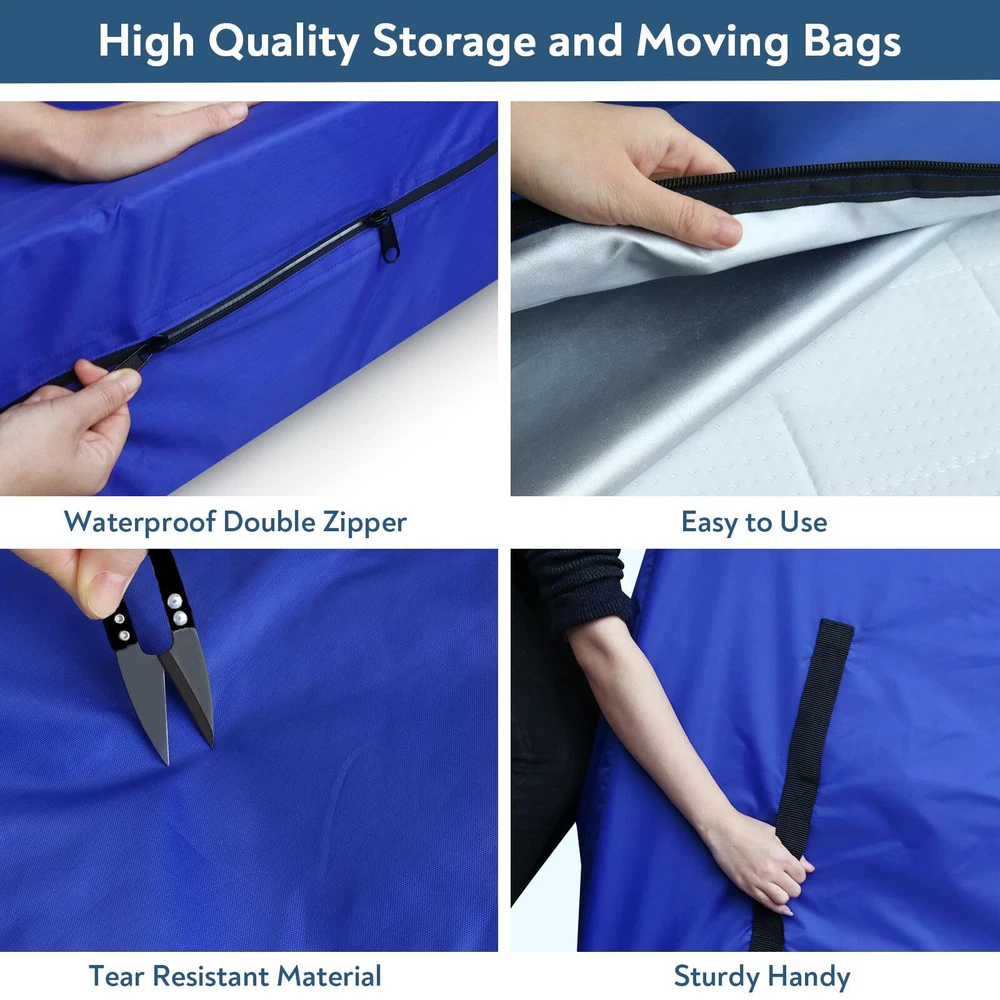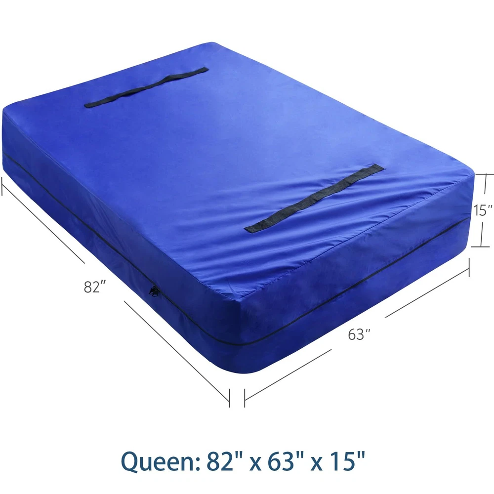 Dimensions of mattress bag: 82" x 63" x 15", fits Queen size mattress. Reinforced Handles & Zippers: The mattress bag is designed with 4 reinforced handles.The sturdy handles have high-density stitches, you can easily lift, push by gripping these handles when moving your mattress. Sturdy zipper for easy on and off, especially for heavy mattress. Mattress Cover for Moving: The mattress bag is the ideal choice to protect your mattress during transportation, moving house or putting your mattress into storage. It protect the mattress from dirt, dust or water by storing them in our mattress bag. Tear Resistant: Our mattress bag is tear and puncture resistant, which gives you the peace of mind during moving and storage. Satisfaction Service: We will do our best to serve you until you are satisfied. If for any reason you are not satisfied with your mattress bag, please tell us directly.