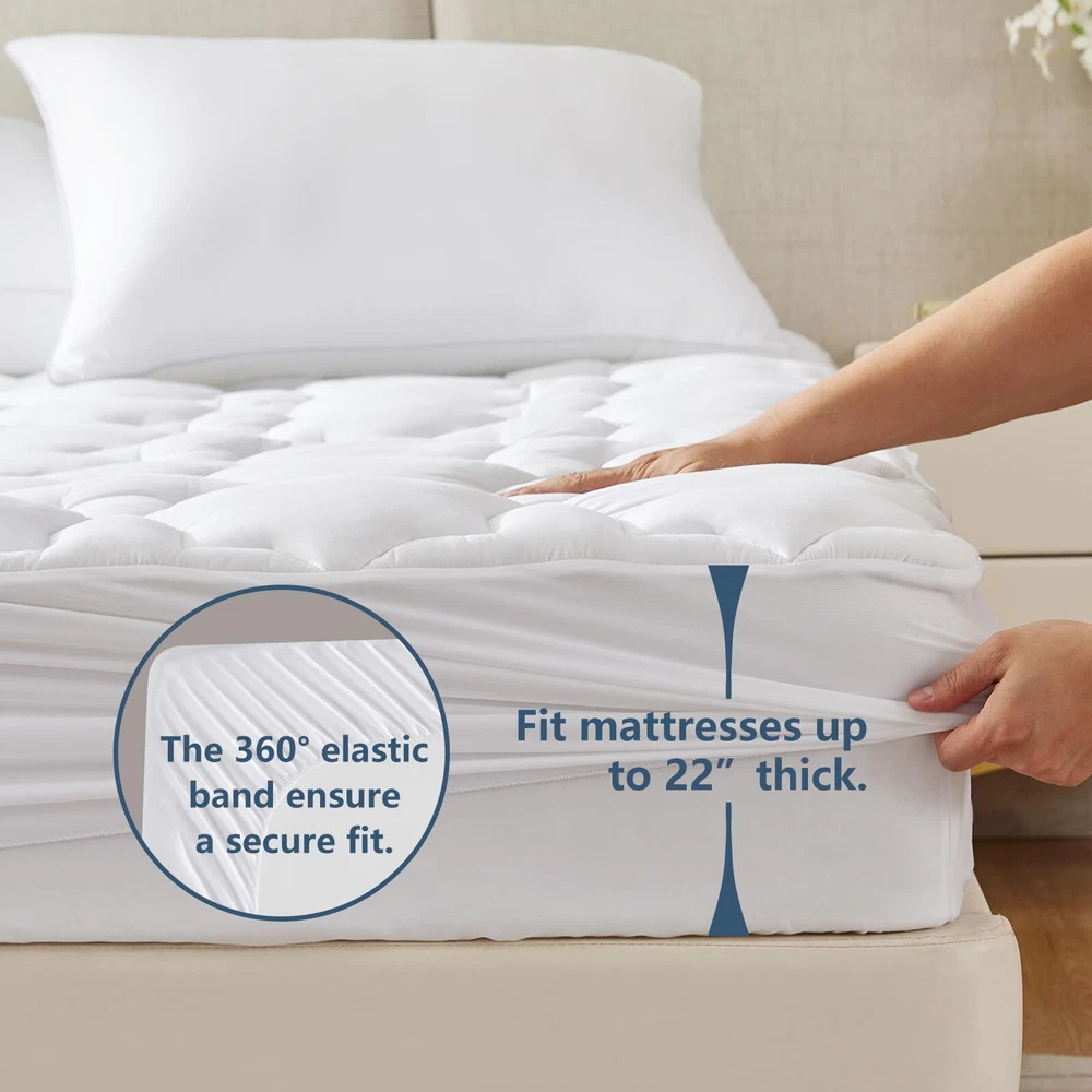Soft and Breathable: The queen mattress pad has premium organic cotton fabric , breathable and sweat-absorbent. And also the quilted pad is filled with extremely soft down alternative polyester which is friendly to those sneezing with goose down and feather bedding; Moderate thickness is also suitable for side sleepers Safe & Sound: Our mattress cover queen size bed has been certified according to rigorous OEKO-TEX Standard 100 requirements that mean the product satisfies the highest criterion of testing for harmful chemicals and has been found to be harmless for humans. Elaborate Design: Professional quilting technology ensures durable structure that provides extra long-lasting service. The chic hexagram pattern can add a fresh touch to any bedroom's look. Elastic deep pocket stretches to fit up to 22" deep mattress which can always keep non slip no matter how you twist and turn in your bed Easy Care: The mattress pads/covers are machine washable which can save you more time and energy. For year round softness and prevent pilling up, it's highly recommend to wash it in the gentle cycle with cold water, sun-dry or tumble dry in low when needed. Let our cotton mattress pads keep providing you and your family with cozy sleeping Satisfactory Service: As your satisfaction is of the utmost importance to us. is committed to offering you premium products and a caring service. Please feel free to contact us if you have any questions about our products. We would try our best to solve problems as soon as possible