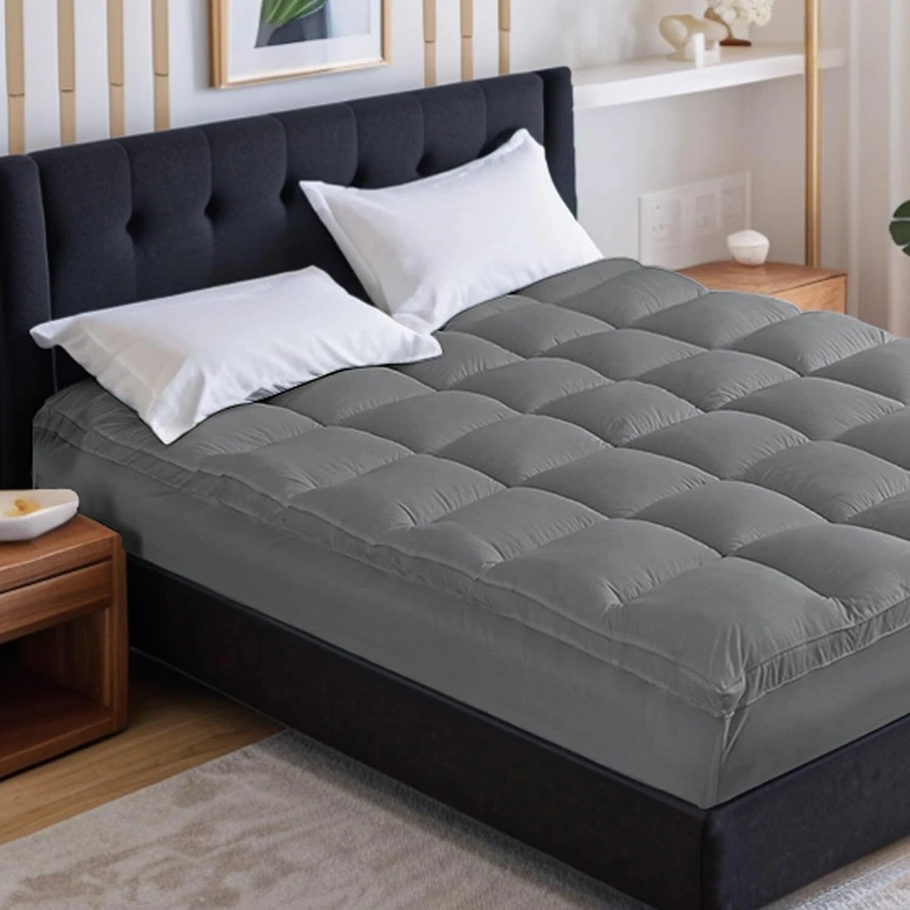 ☁️ Upgraded Comfort: Elevate your comfort to new heights with our mattress topper featuring advanced 3-dimensional (3D+7D) snow down alternative filling. Twice as dense as traditional mattresses, it ensures even weight distribution for enhanced softness and cushioning, inviting a deeper and more restful sleep experience. ☁️ Breathable Design: Stay cool all night with our 400TC combed top surface. Its superior ventilation and heat distribution wick away sweat, providing a dry and comfortable sleeping environment, perfect for those prone to overheating on memory foam or foam mattresses. ☁️ Premium Craftsmanship: Our mattress topper boasts delicate square quilting that prevents shifting or leaking of filling, while a double border design enhances fluffiness and elegance, elevating the luxury of your bedding. ☁️ Secure Fit: Designed with an elastic deep pocket, our mattress topper snugly fits mattresses 8 to 21 inches thick, wrapping your mattress 360°all-around. Acting like a fitted sheet, it securely anchors the topper, ensuring undisturbed sleep throughout the night. ☁️ Easy Maintenance: Say goodbye to stains and odors with our machine washable mattress topper. Simply toss it into the washing machine for a quick and easy clean. No need for expensive dry cleaning, saving you time and money.