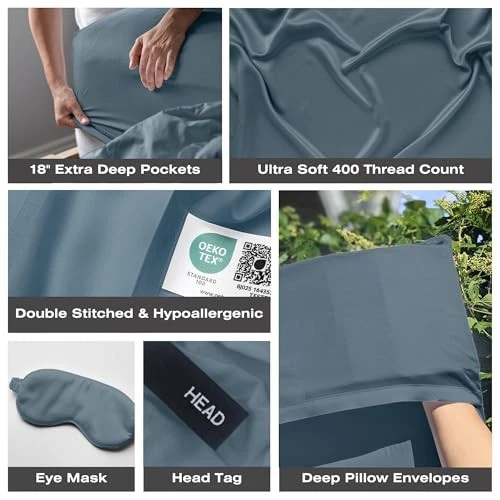 Menu 1. We require immediate payment. 2. We currently accept payment via eBay managed payments only. 3. Once payment is cleared, we will dispatch your shipment within 1-3 business days. Please refer to the "Shipping" tab for more information regarding shipping speed to your destination. Queen-Sized Bed Sheet Set, Ocean Blue | Fitted Bed Sheet with Pillow Cases, Flat Sheet & Sleep Mask | Breathable, Ultra-Soft Cooling | Deep Pocket Up to 18in | Double Stitched Sateen Product description SILKY SOFT & COOLING BED SHEETS: Our ultra-breathable 400 thread count sateen weave 100% viscose made from bamboo sheets set are ideal summer bedding. Soft-as-silk sheets queen size bed set. DEEP POCKETS & EASY FIT: These viscose derived from bamboo sheets are a dream. 18” deep pocket queen sheets are double-stitched to ensure durability and a great fit. Long & Head tags for easy fit! REST EASY: This silky soft queen size sheet set are Earth's Comfiest Bed Sheets. Each machine washable sheet set comes with; 1 fitted sheet, 1 flat sheet, 2 pillowcases & 1 complementary sleep mask. 5-STAR QUALITY HOTEL SHEETS: Sleep like you are on vacation, every night. Our softer-than-silk sheets get softer with each wash to protect your skin from morning wrinkles and your hair from breakage. EARTH-FRIENDLY: Our OEKO-TEX certified organically grown 100% viscose from bamboo bed sheets can be returned to nature and composted when the time comes. Truly sustainable queen size bed sheets. PLEASE MESSAGE US IF YOU HAVE ANY OTHER QUESTIONS, AND MANY THANKS FOR READING ALL OF THIS. Copyright ©#. All Rights Reserved.